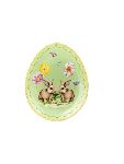 O prato de sobremesa oval páscoa da linha RB Verde fica perfeito na combinação de sua mesa posta de páscoa.