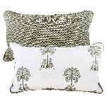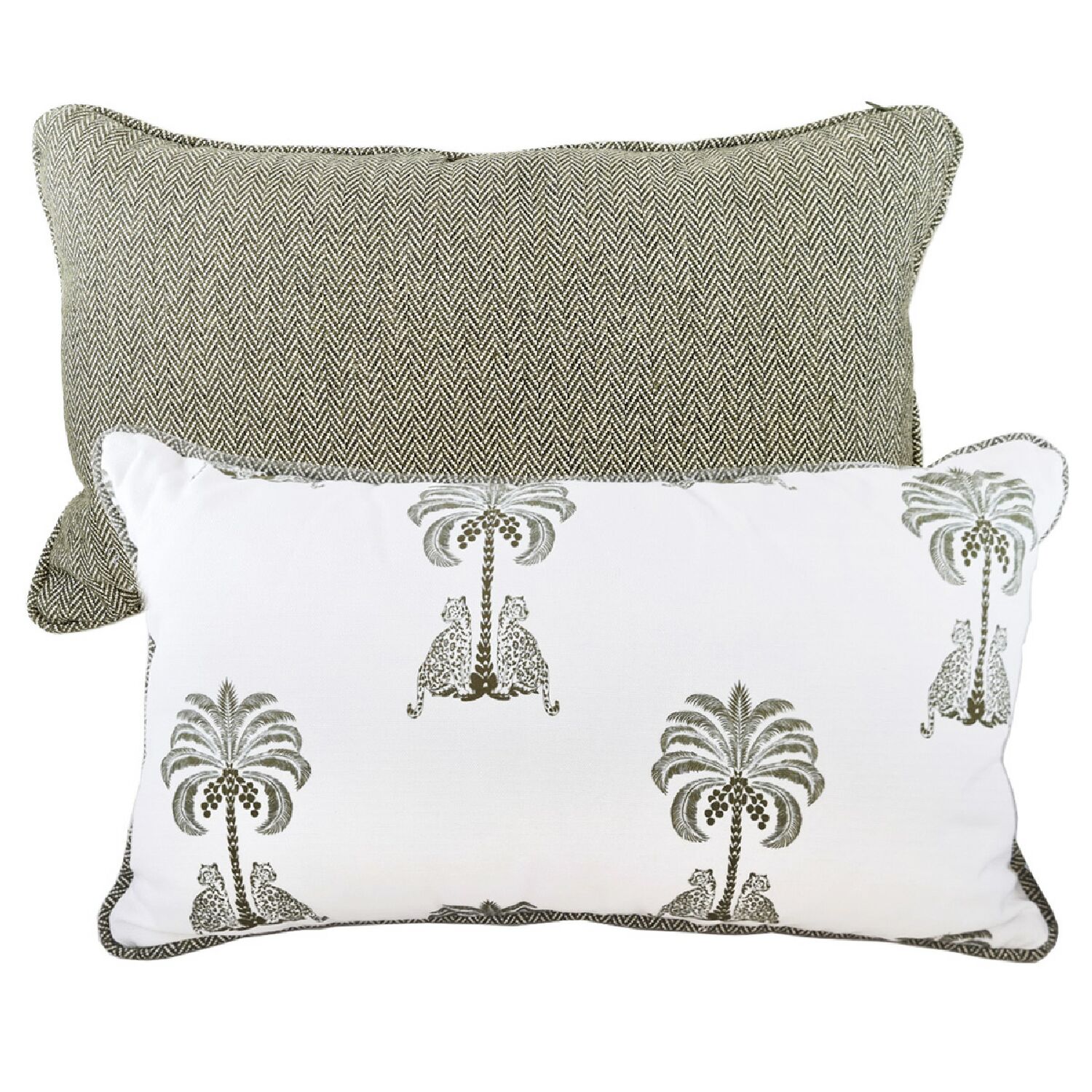 A almofada onça cedro com tecido Entreposto tem o enchimento de penas e plumas de ganso certificadas e seu zíper é invisível.