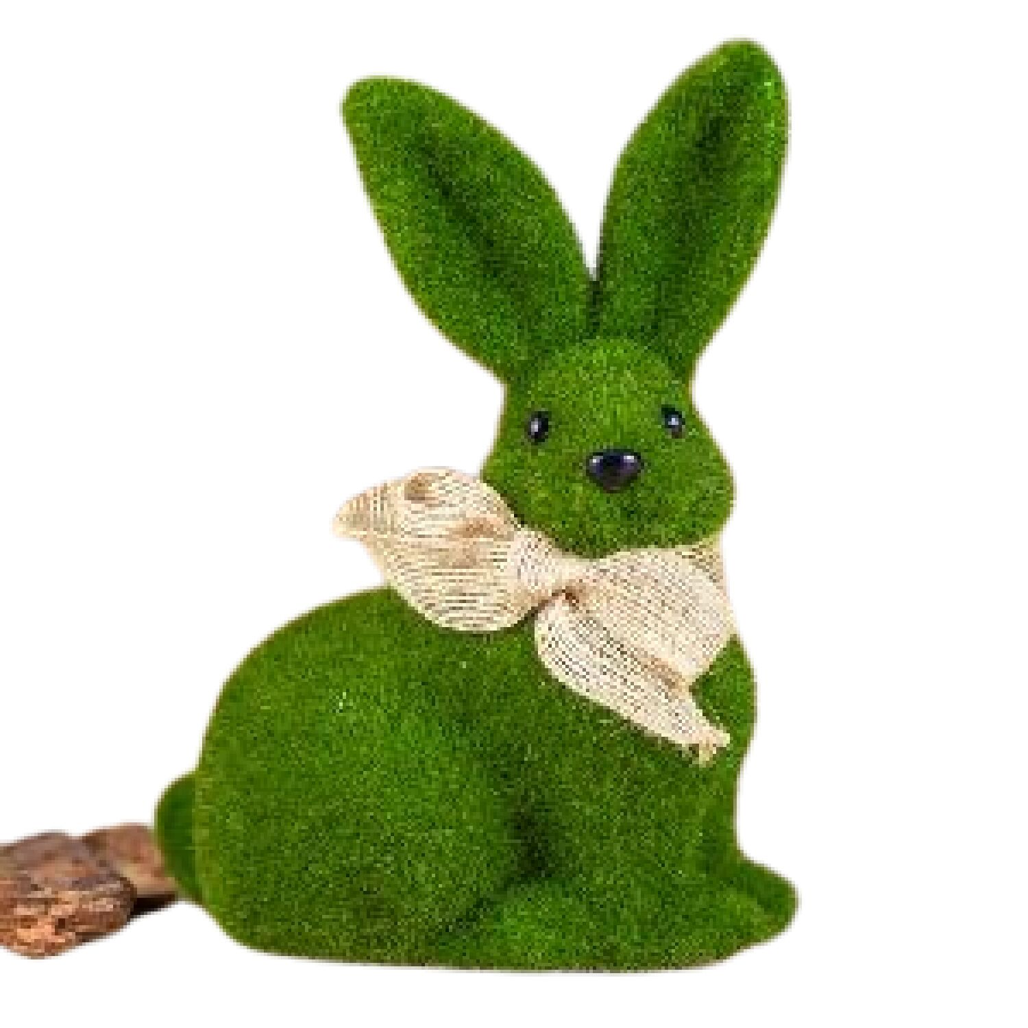 O coelho sentado em musgo verde possui 21cm, é ideal para compor a sua decoração.
