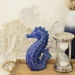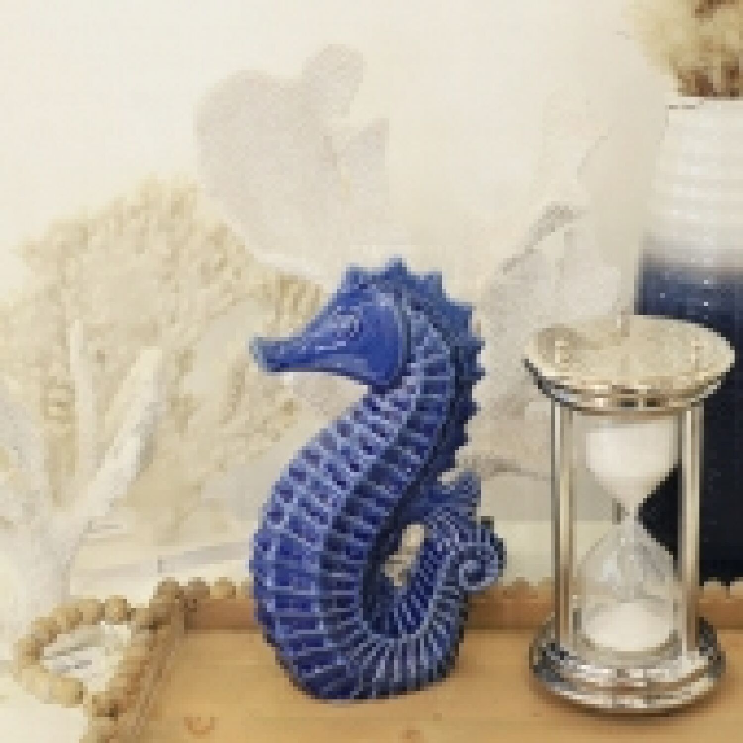 O cavalo mariho decorativo em cerâmica azul pode ser utilizado em mesas laterais, mesas de centro, nichos ou ainda em mesinhas de cabeceira.