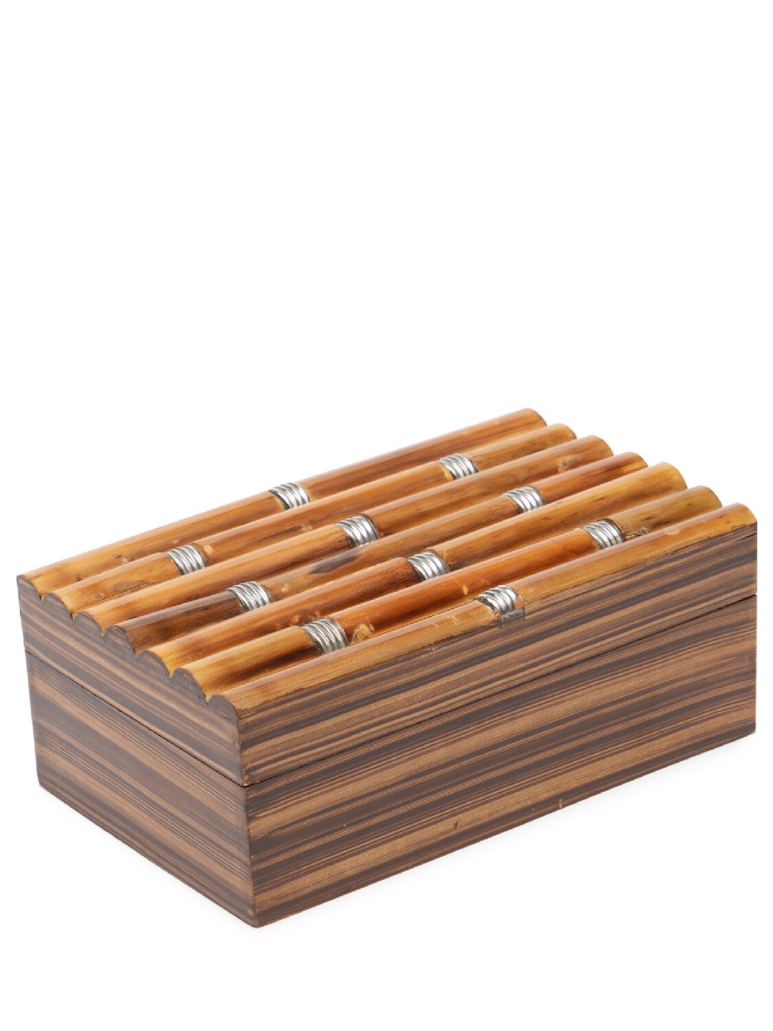 A caixa é em mdf com detalhes em metal, é ideal para guardar objetos com requinte e praticidade, além de compor a decoração do ambiente.