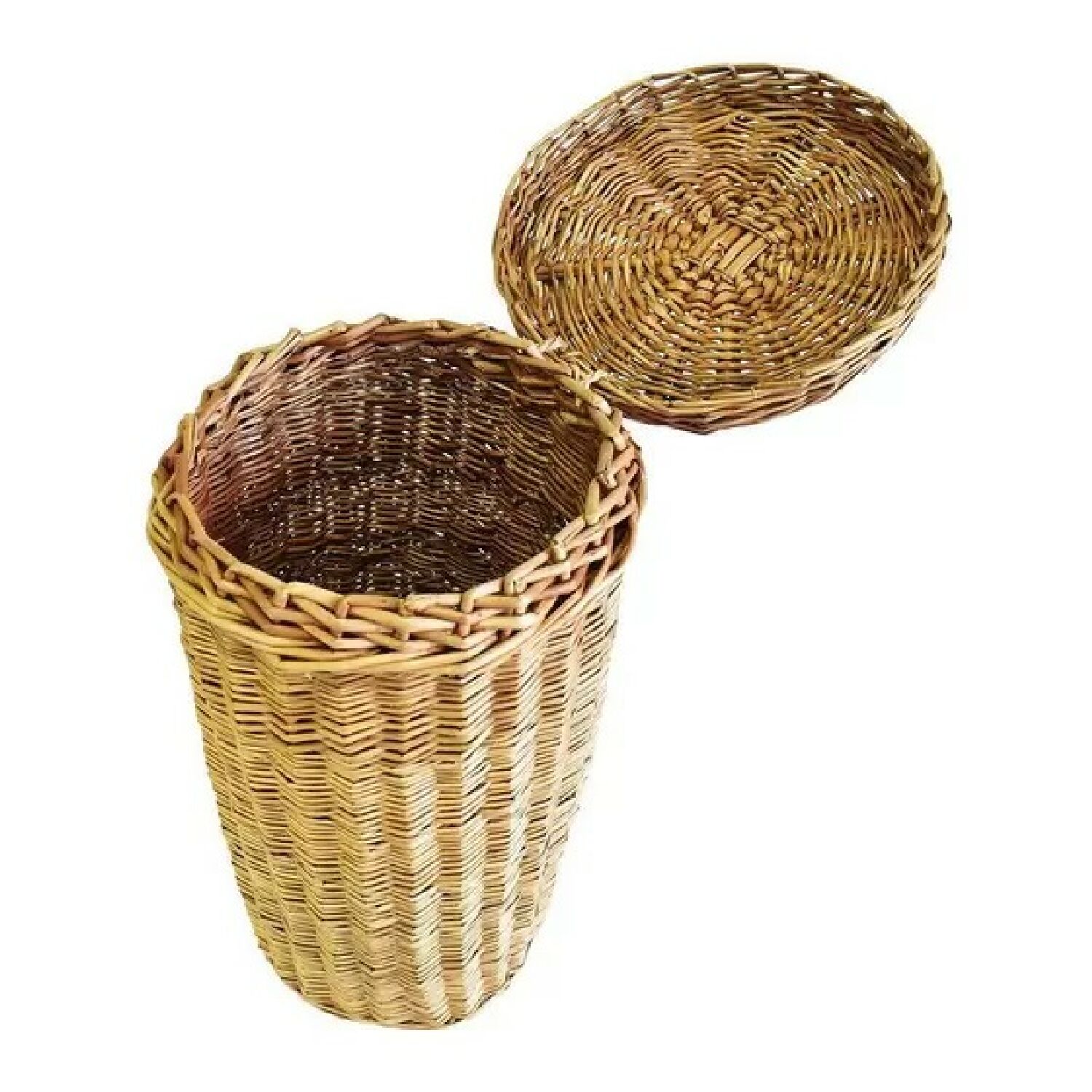 O porta papel higiênico possui detalhes que fazem toda a diferença para o lavabo ou banheiro, é produzido em vime com puxador de bambu.