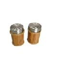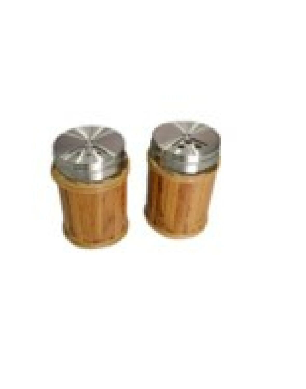 O conjunto de saleiro e pimenteiro é produzido em vidro com a tampa em inox revestido em bambu natural.