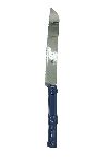 A faca de pão é em aço inox com cabo em bambu natural na cor azul, fica perfeita na combinação de sua mesa.