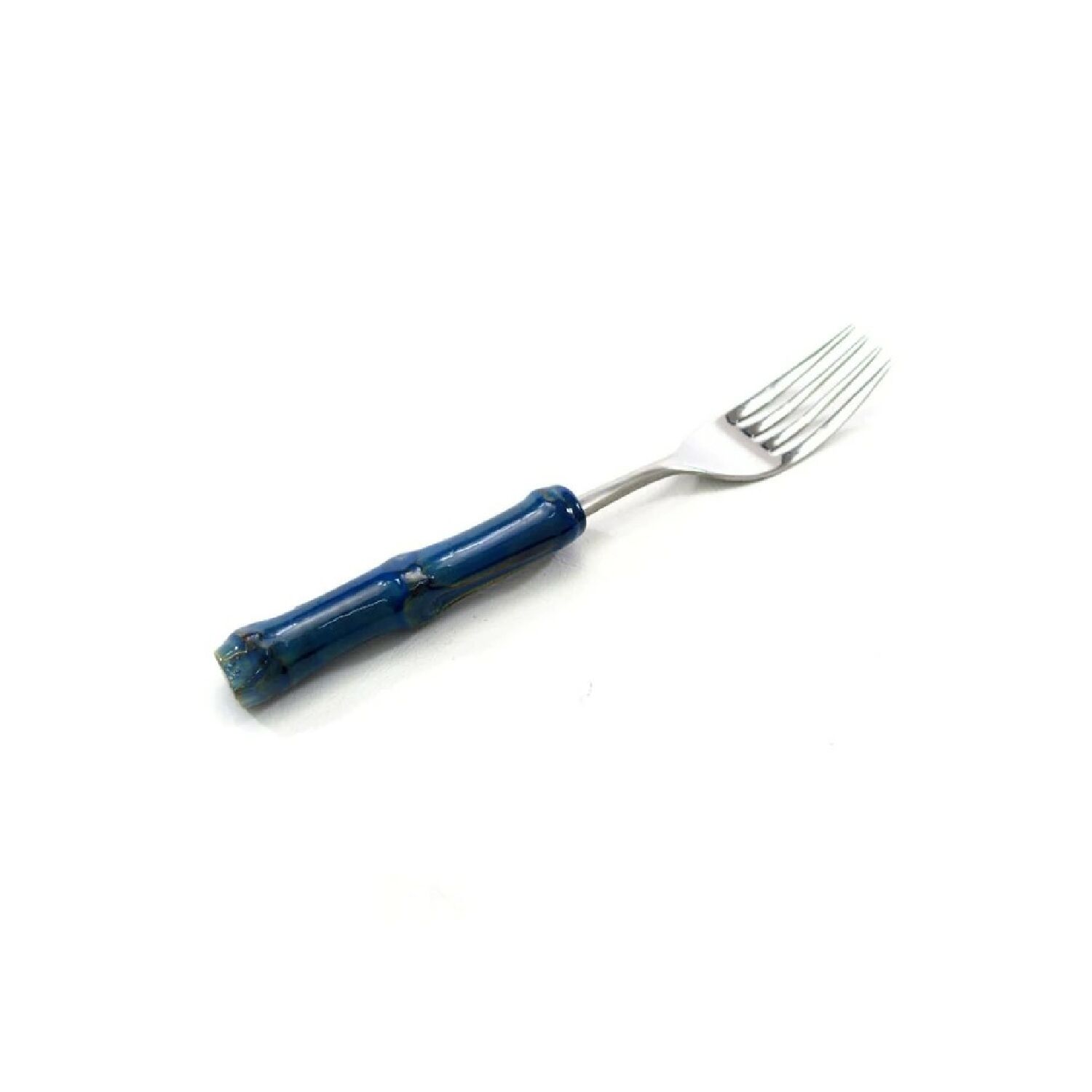 O garfo de mesa é em aço inox com cabo em bambu natural na cor azul, fica perfeita na combinação de sua mesa.