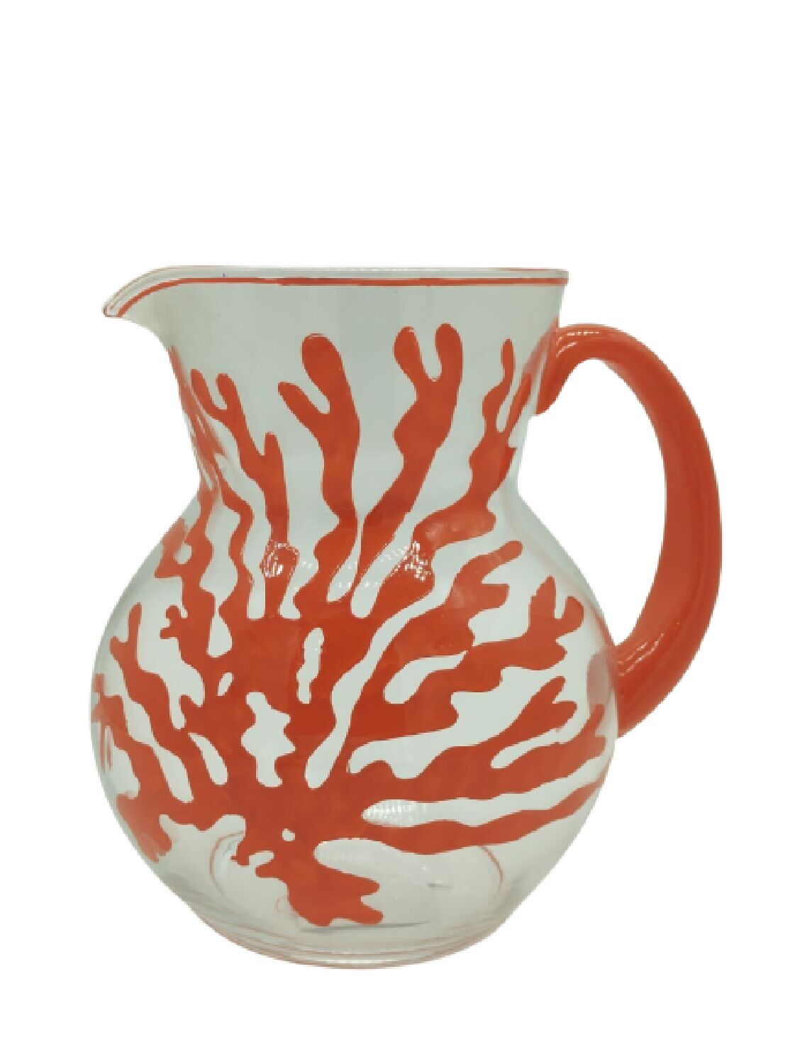 A jarra é pintada a mão possui uma estgampa de coral na cor coral.