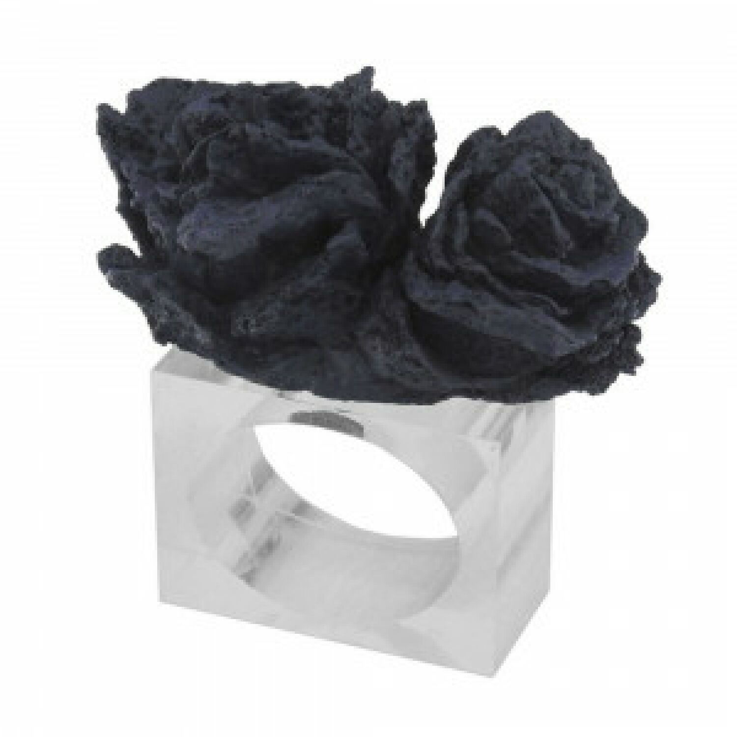 O porta guardanapo é em poliresina com base em acrilico azul, é ideal para compor a mesa.