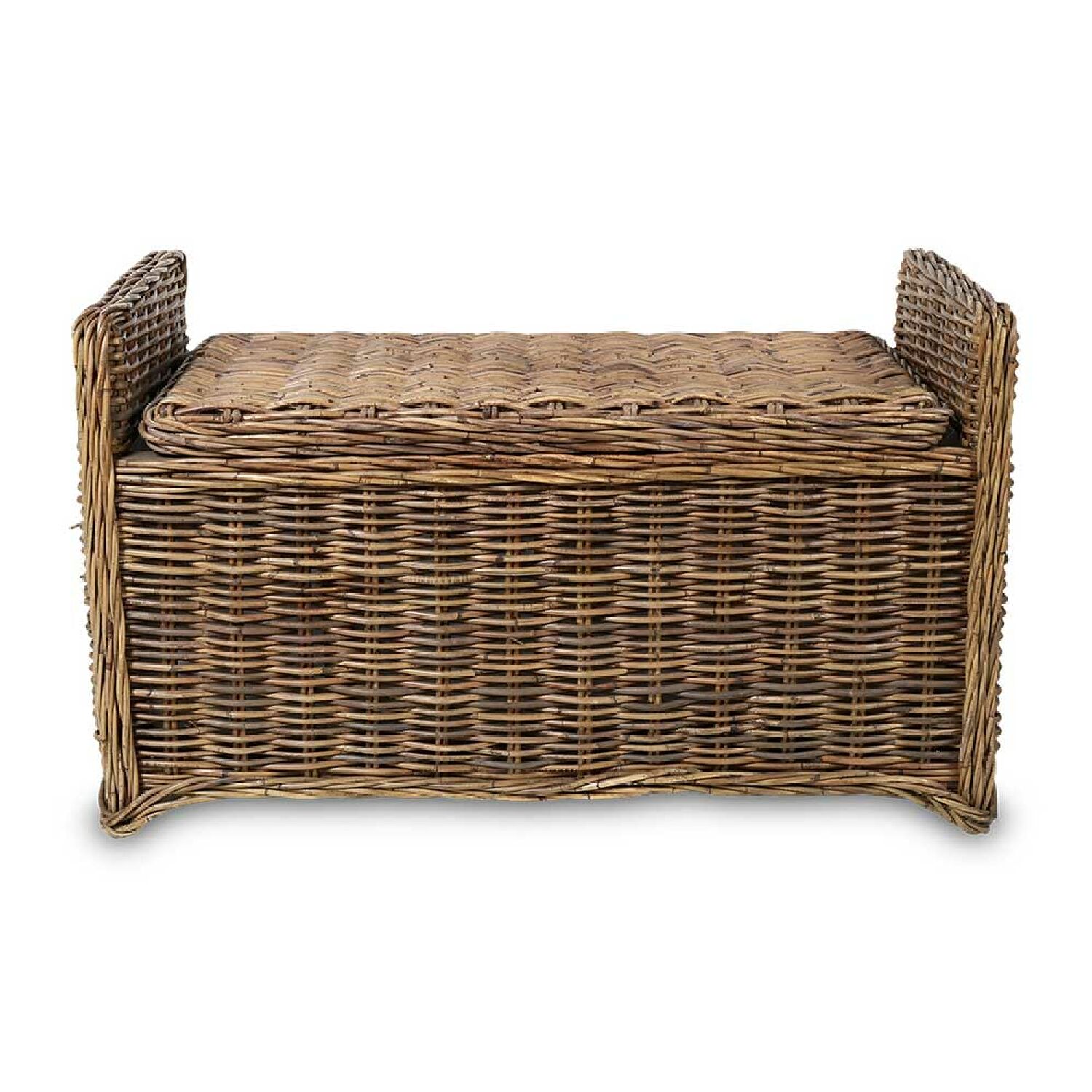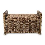 O baú decorativo é em rattan, além de trazer modernidade a sua casa, é ideal para guardar objetos.