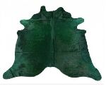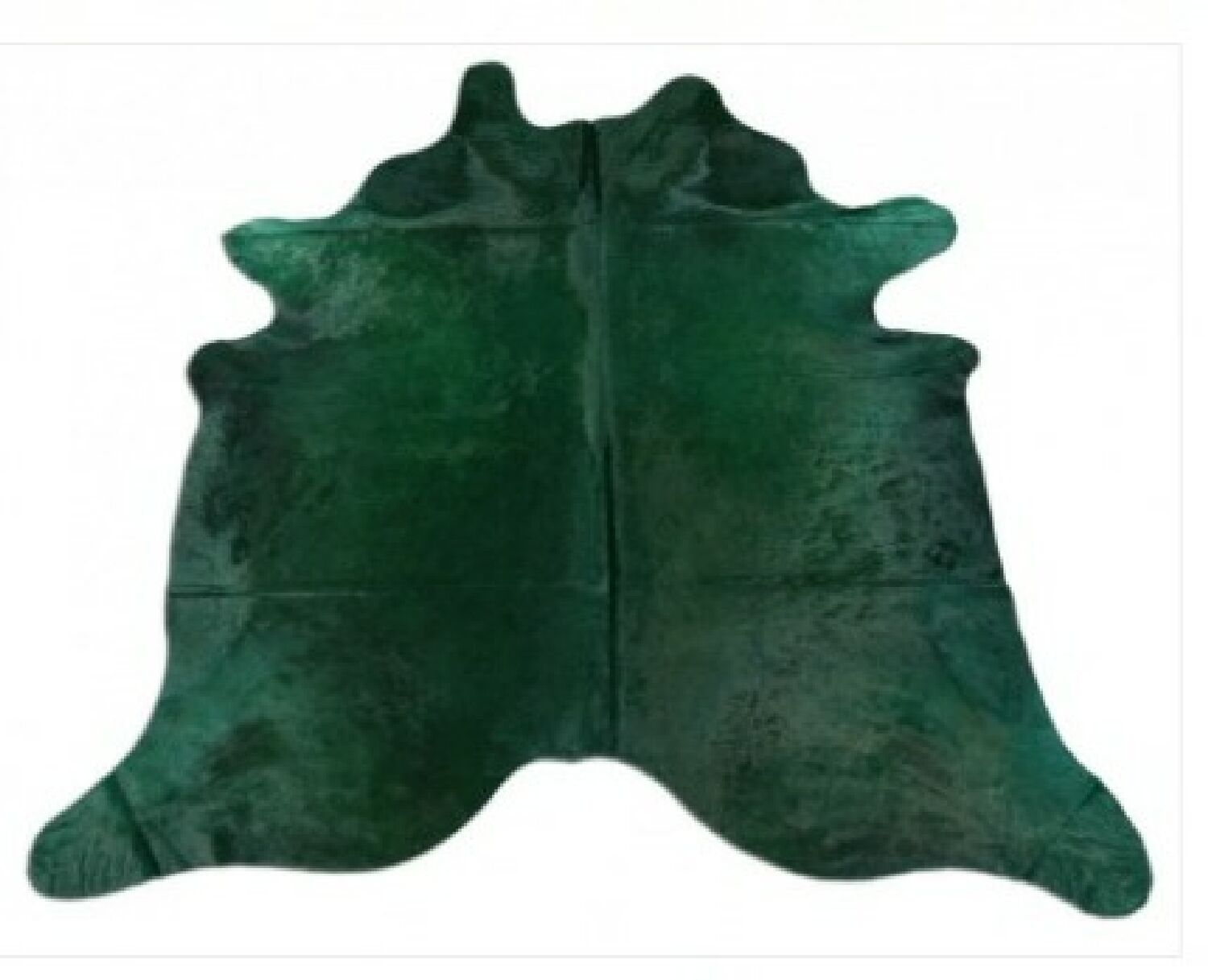 O tapete é em pele formato natural, tingido na cor verde musgo.