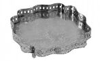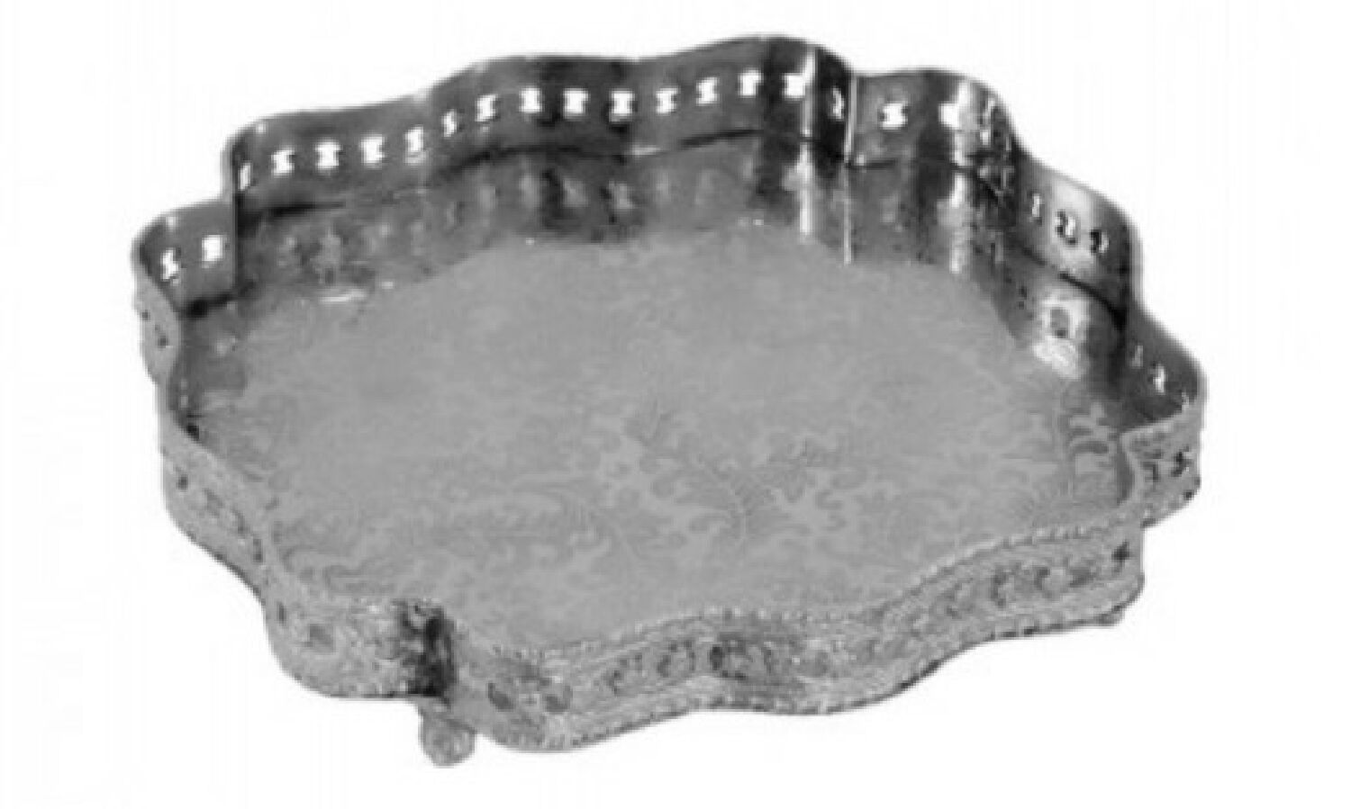 A bandeja é trabalhada em metal na cor prata, perfeita para expor seus objetos no lavabo.