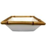 A tigela é quadrada produzida em bambu natural e cerâmica, deixa sua mesa um charme na hora de servir.