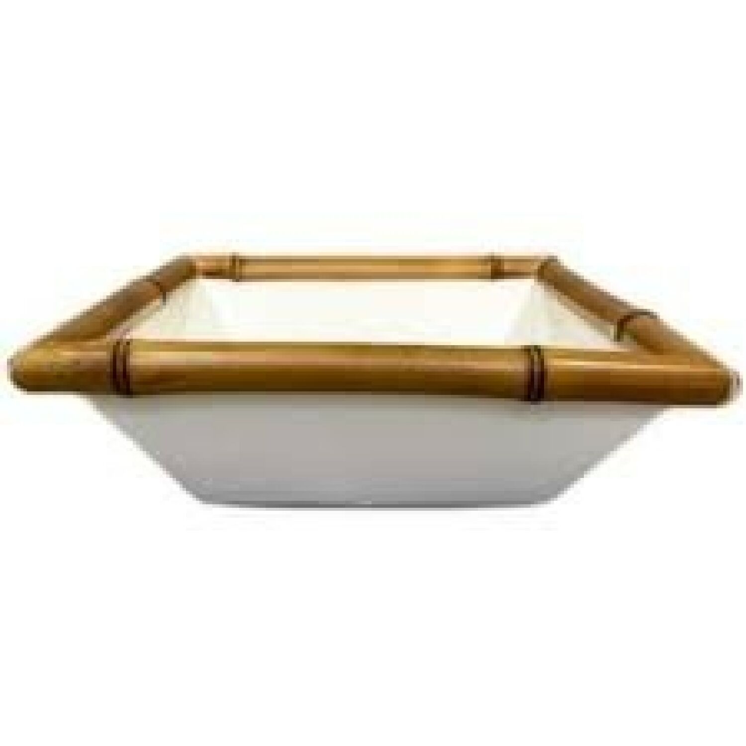A tigela é quadrada produzida em bambu natural e cerâmica, deixa sua mesa um charme na hora de servir.