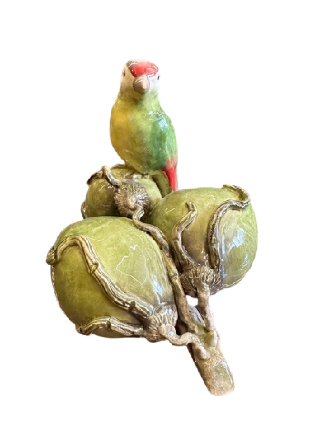 O pássaro é produzido cerámica pintado á mão, ideal para decorar diversos ambientes.