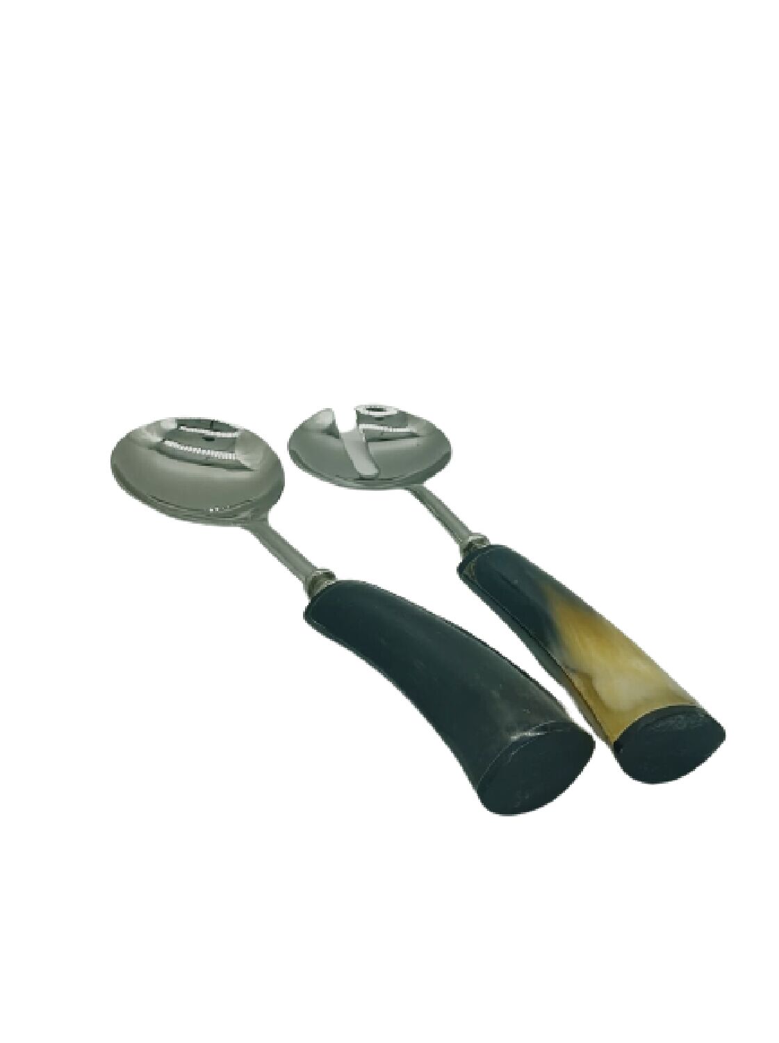Conjunto com 2 talheres de servir - detalhe do cabo em osso.
