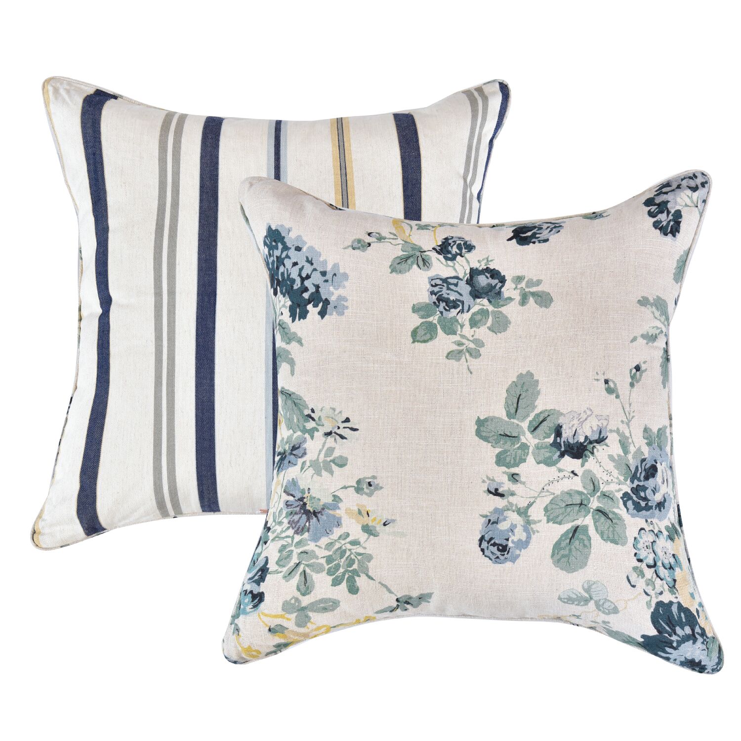 A almofada é produzida em tecido Entreposto da coleção Majorelle.