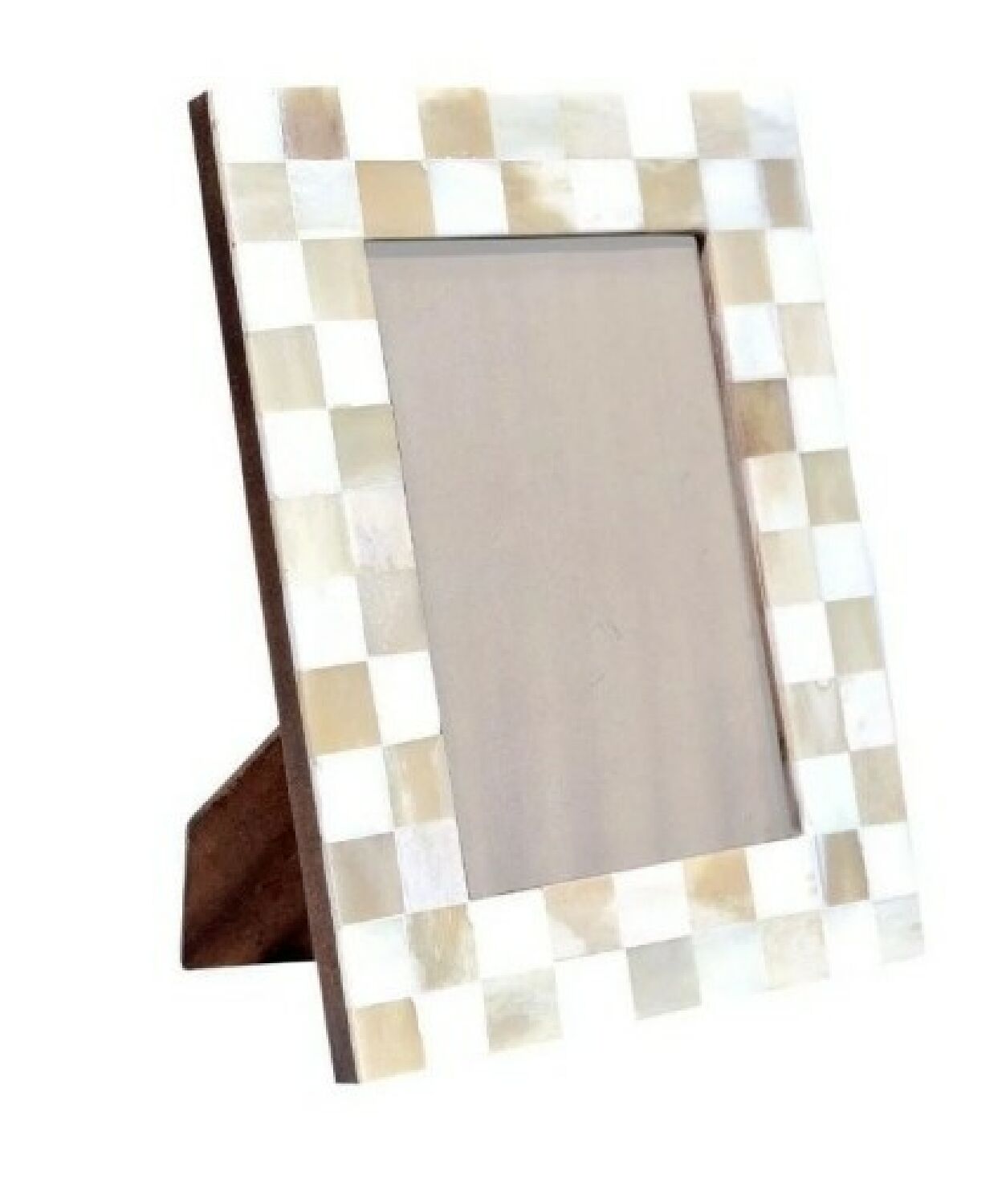 Porta Retrato em Madeira e Osso, é um excelente item decorativo, lindo e todo revestido e construído por artesão indiano com ossos de búfalo design quadriculado nas cores branco e bege, que tem um toque de exclusividade, sofisticação, romamtismo e elegância para embelezar o ambiente, emoldurar e valorizar memórias especiais.