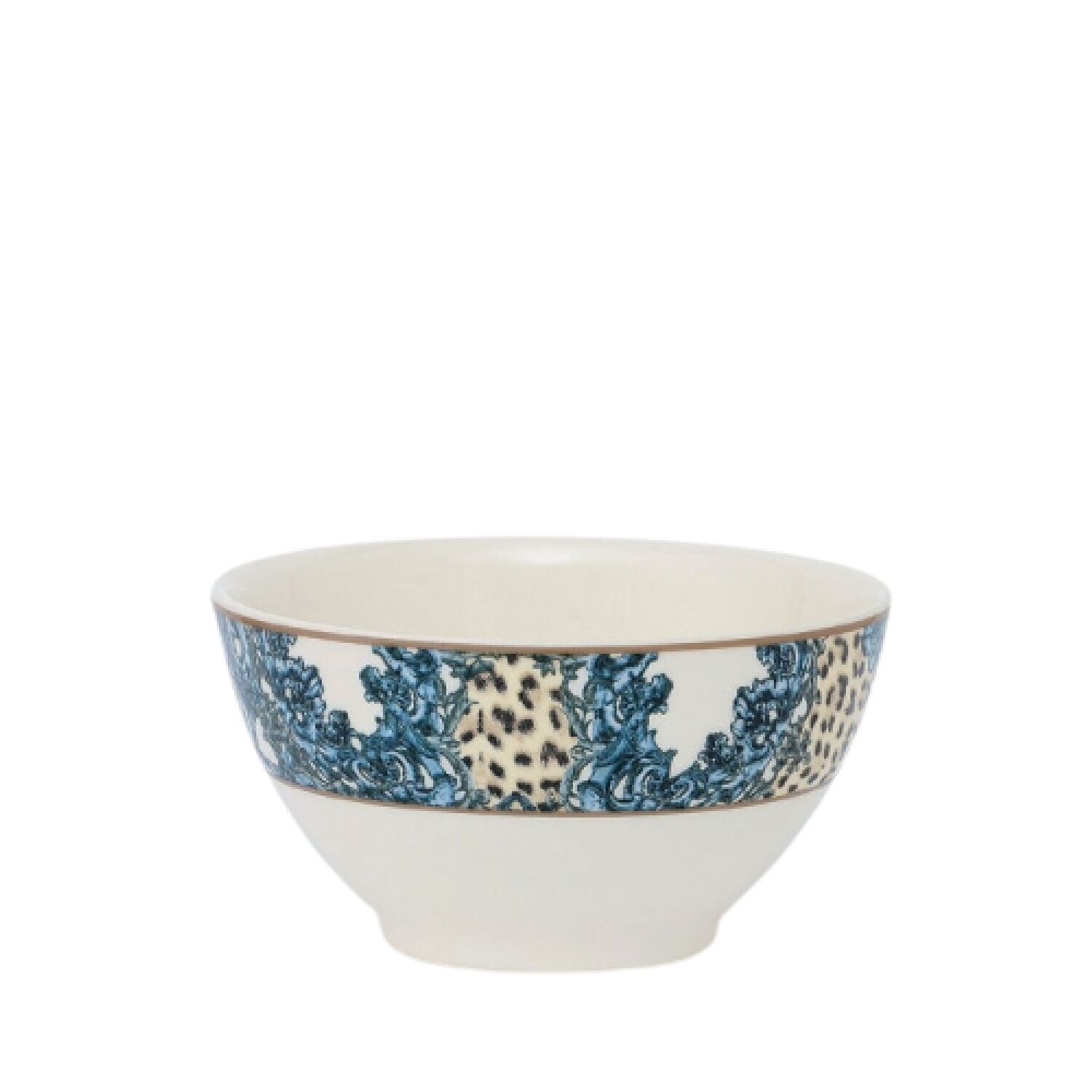 O bowl de porcelana com estampa em onça é produzido a mão.