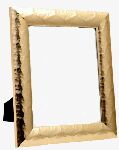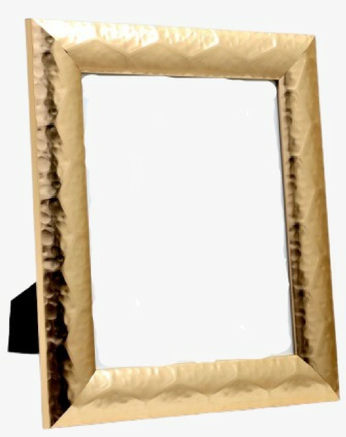 O porta retrato é de vidro revestido em mdf, com detalhe amassado na cor dourado.