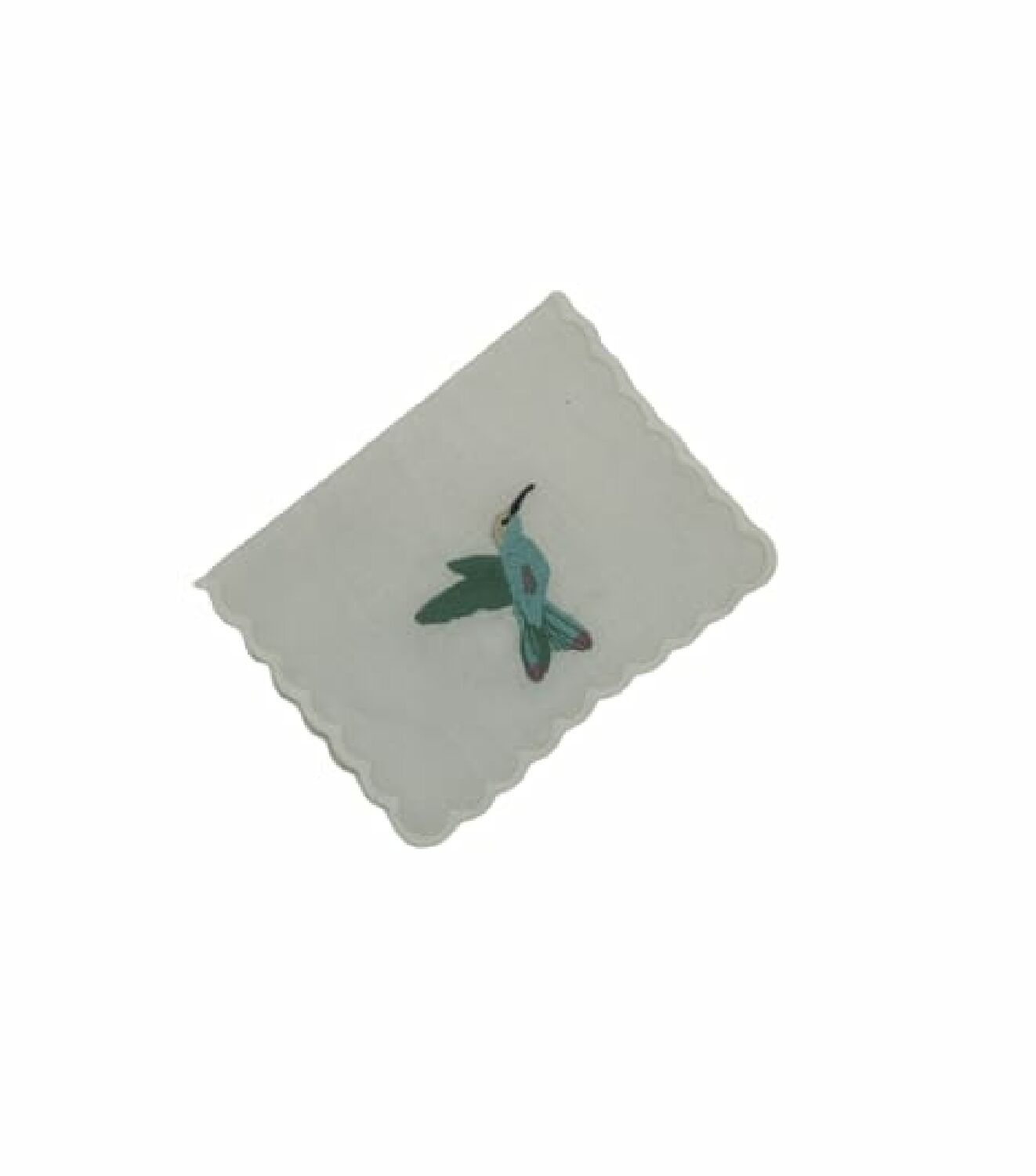 O guardanapo de coquetel é produzido em linho branco com beija flor bordado.
