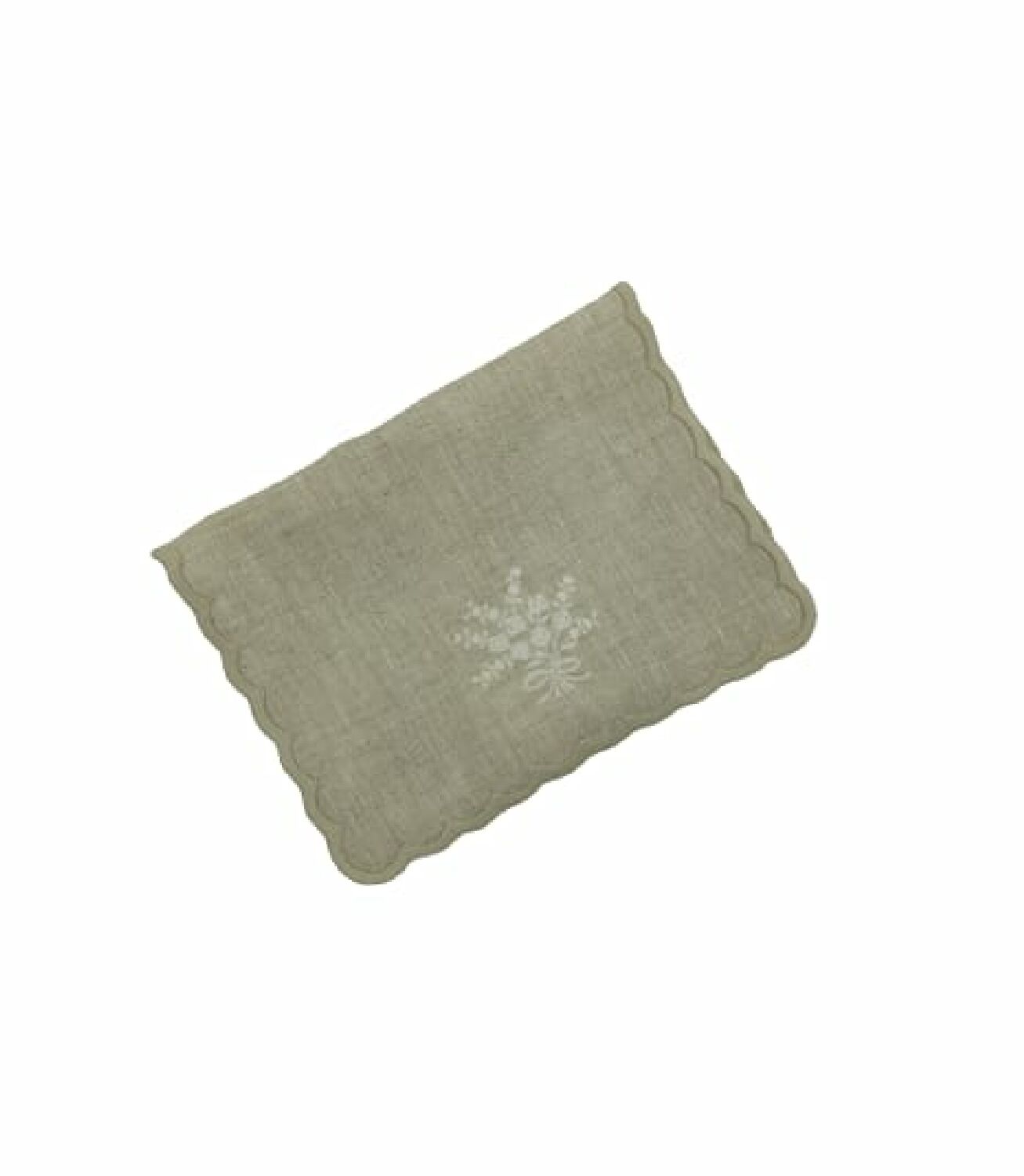 O guardanapo de coquetel é produzido em linho branco com beija flor bordado.