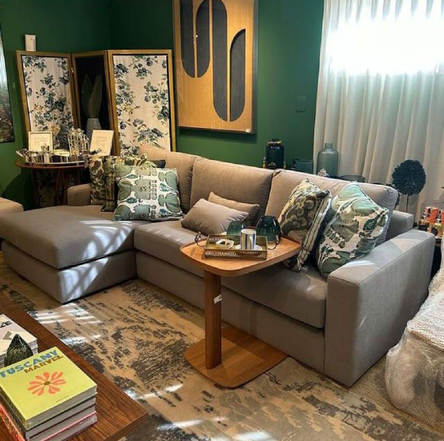 O sofá squar com cheise em tecido é confortável para curtir momentos de relaxamento elegante para a decoração, a peça é ideal para os ambientes internos.