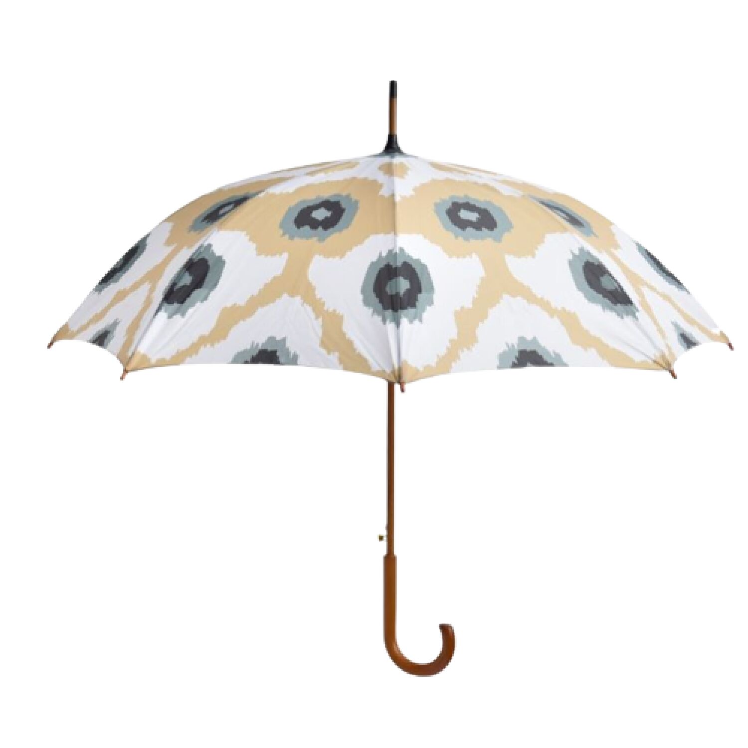 O guarda-chuva Ikat tem estrutura resistente, feito de madeira, aço e nylon, é uma ótima opção para dias chuvosos. Com acabamento estampado de Ikat, ele é charmoso e traz um toque de personalidade ao visual. Além disso, é leve e fácil de transportar.