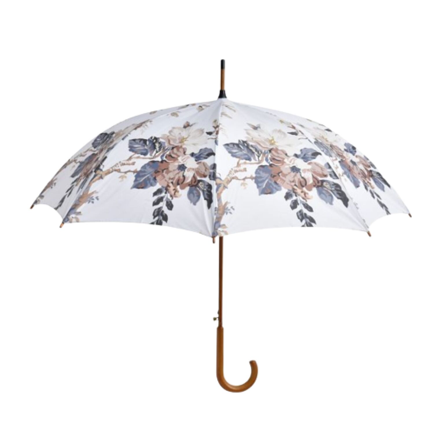 O Guarda-chuva Flor Acácia da coleção Denim é composto por madeira e aço, garantindo durabilidade e segurança em dias chuvosos e com ventania. O acabamento estampado é um charme à parte, com desenhos de flores de acácia em tons suaves de azul e cinza. O nylon utilizado é impermeável e de alta densidade, garantindo proteção contra a chuva e raios UV.