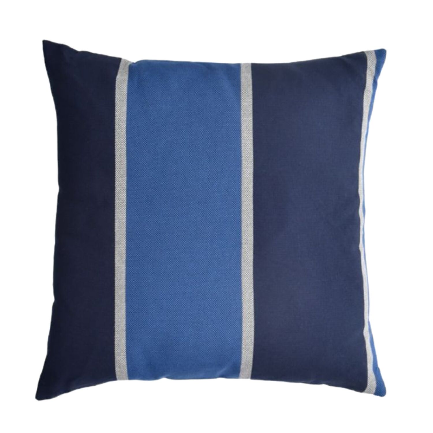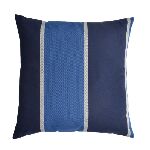 A almofada é produzida pela entreposto, no tecido Lista Manta Lista Denim e um aviamento muito especial.