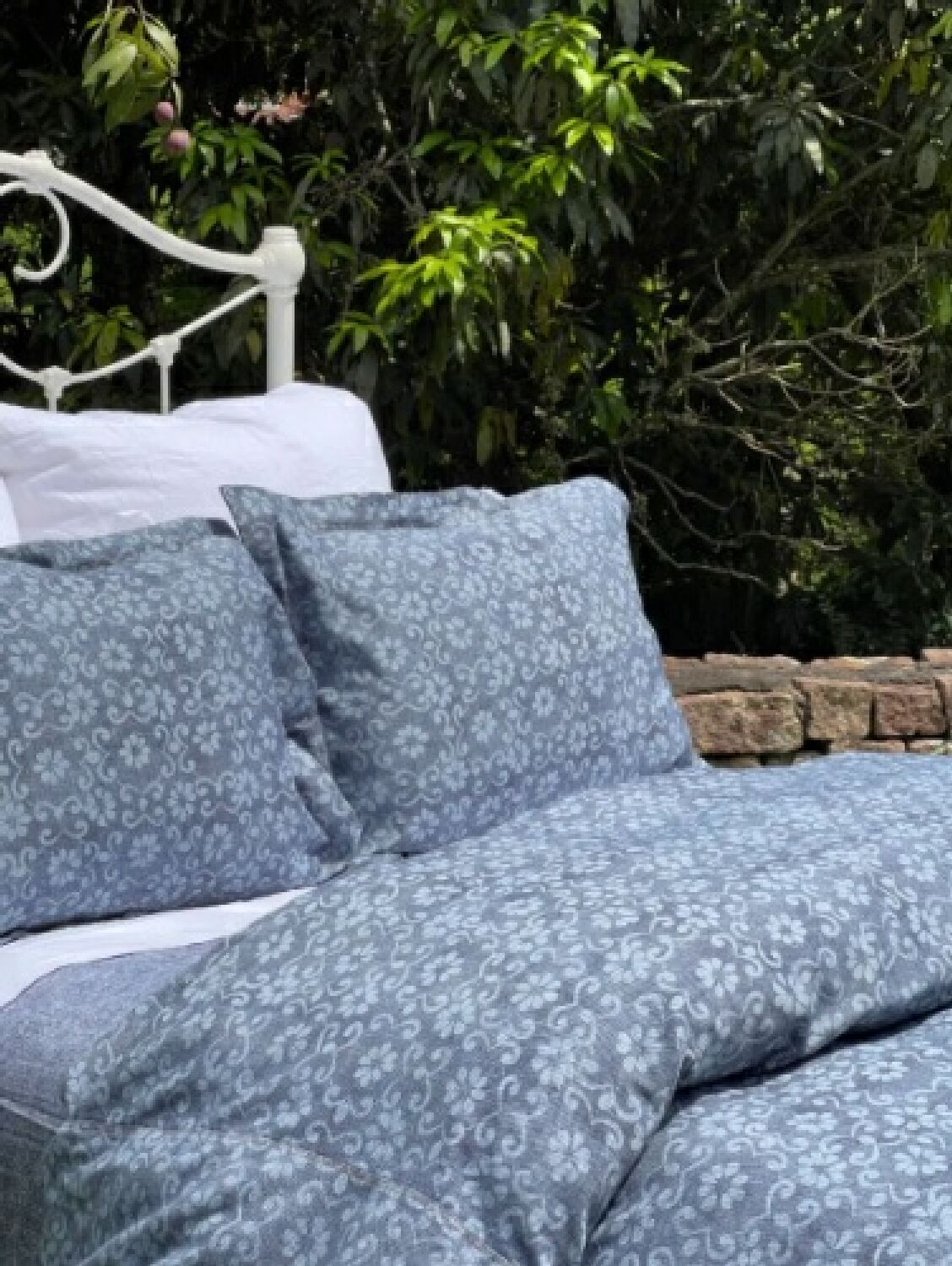 A capa de duvet Denim Flor double-face com costura ocre e travesseiro estampado é uma opção moderna para a decoração do quarto. Feita em jeans de alta qualidade, possui um lado liso em tom escuro e o outro com textura levemente mesclada em tom claro, permitindo duas opções de uso.O travesseiro apresenta um estampado em jeans que combina perfeitamente com a capa. Os botões de metal em ouro velho personalizado adicionam um toque único à peça, destacando a atenção aos detalhes e qualidade do produto. Além de decorativo, o conjunto proporciona conforto e aconchego.