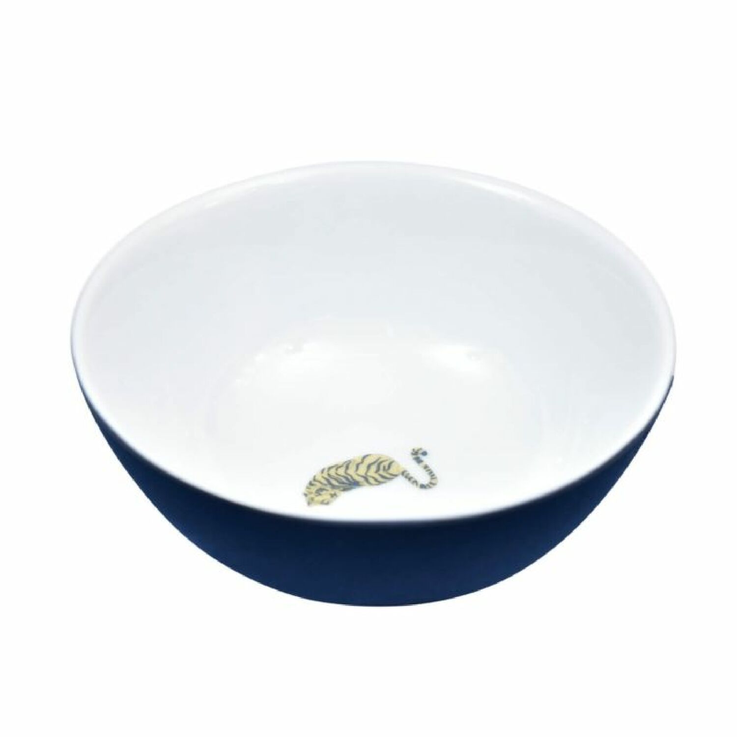 Como parte dessa coleção, apresentamos o bowl de porcelana branca com decalque alzul na parte externa e um tigre no centro da parte interna. Esse produto incorpora a essência da coleção Jaipur, oferecendo um toque exuberante e cheio de personalidade à sua casa.