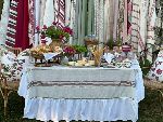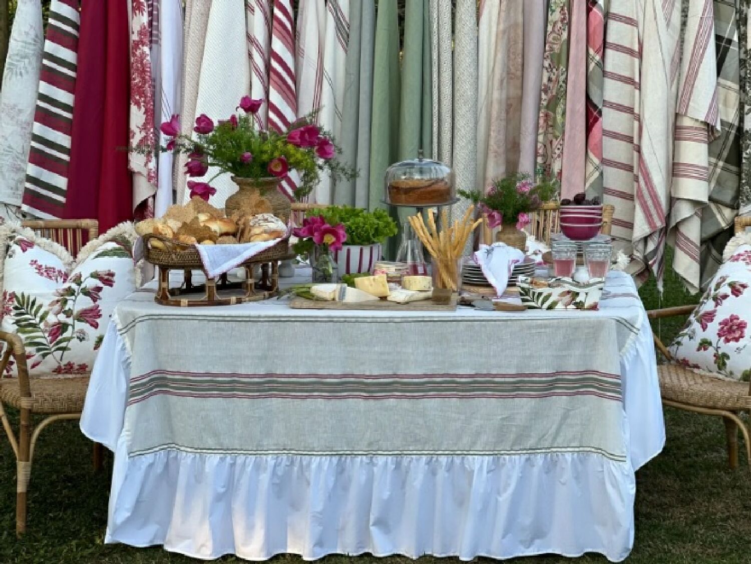 Confeccionada com tecido Entreposto e detalhes listrados com babado, esta peça da coleção Toulouse une tradição e inovação inspiradas na cidade rosa francesa.