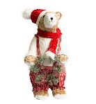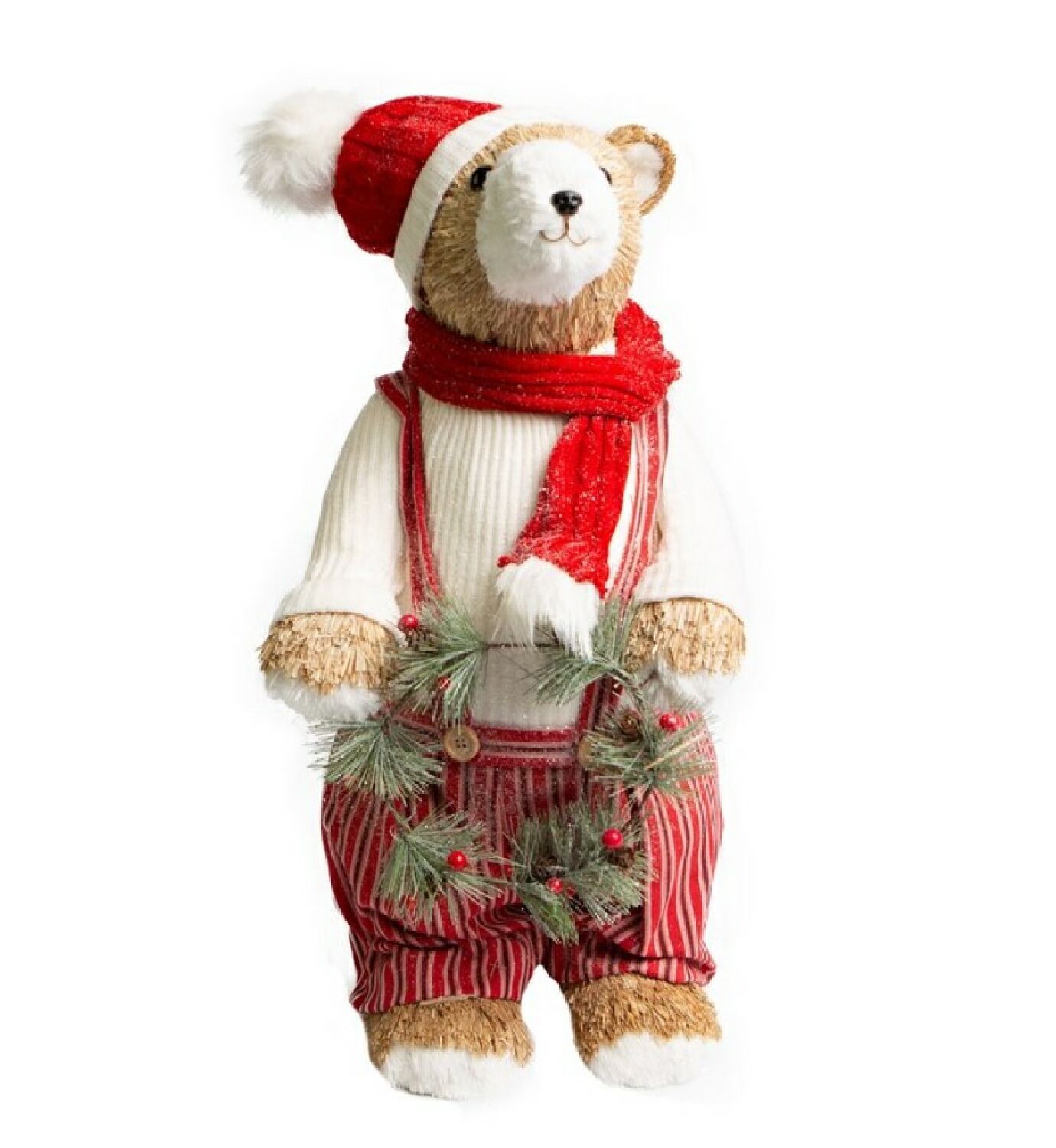 O urso guirlanda Lucky é de palha natural nas cores bege, branco, vermelho e verde.
