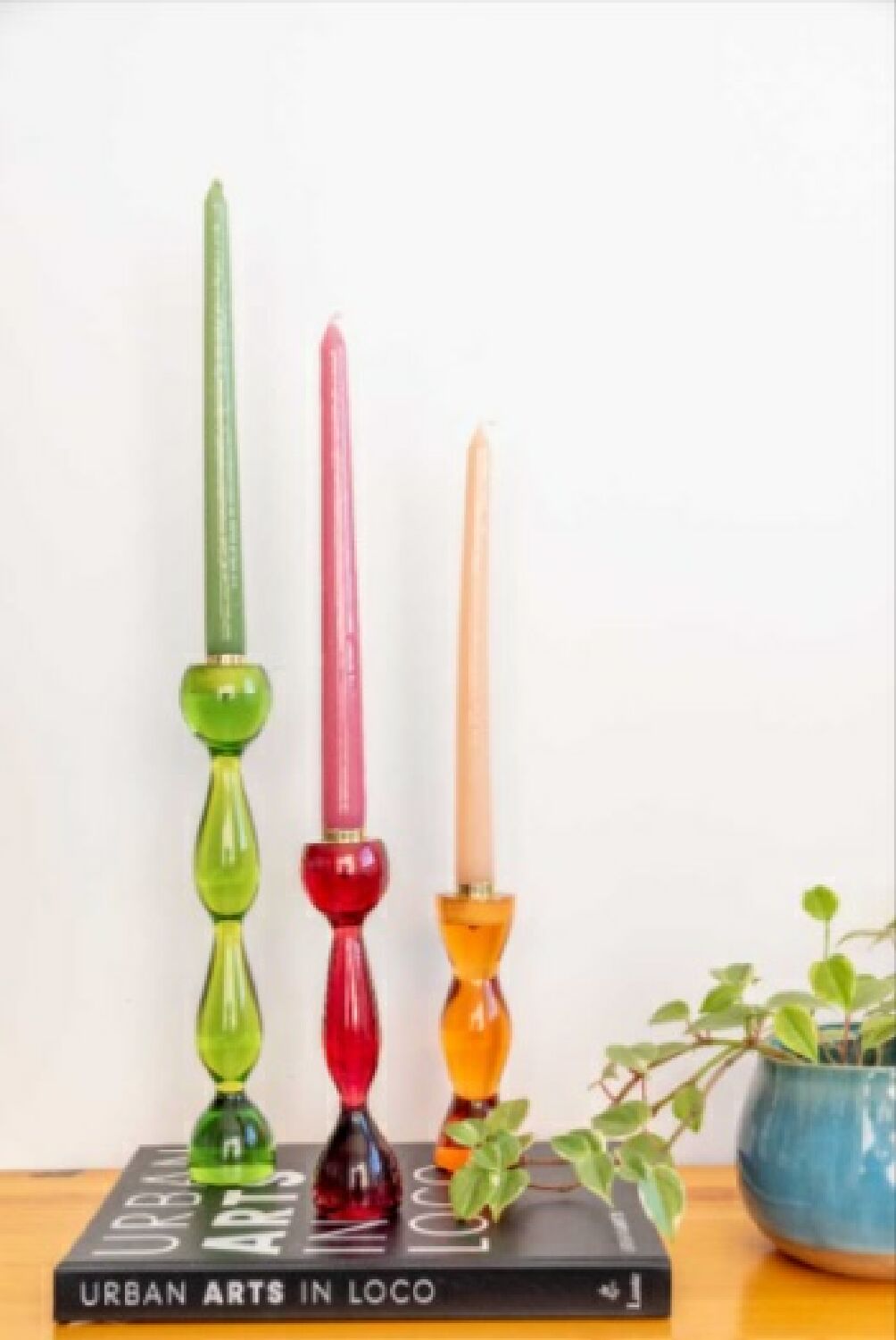 CASTIÇAL CURVAS EM ACRÍLICO DE ALTA QUALIDADE, NA COR AZUL.