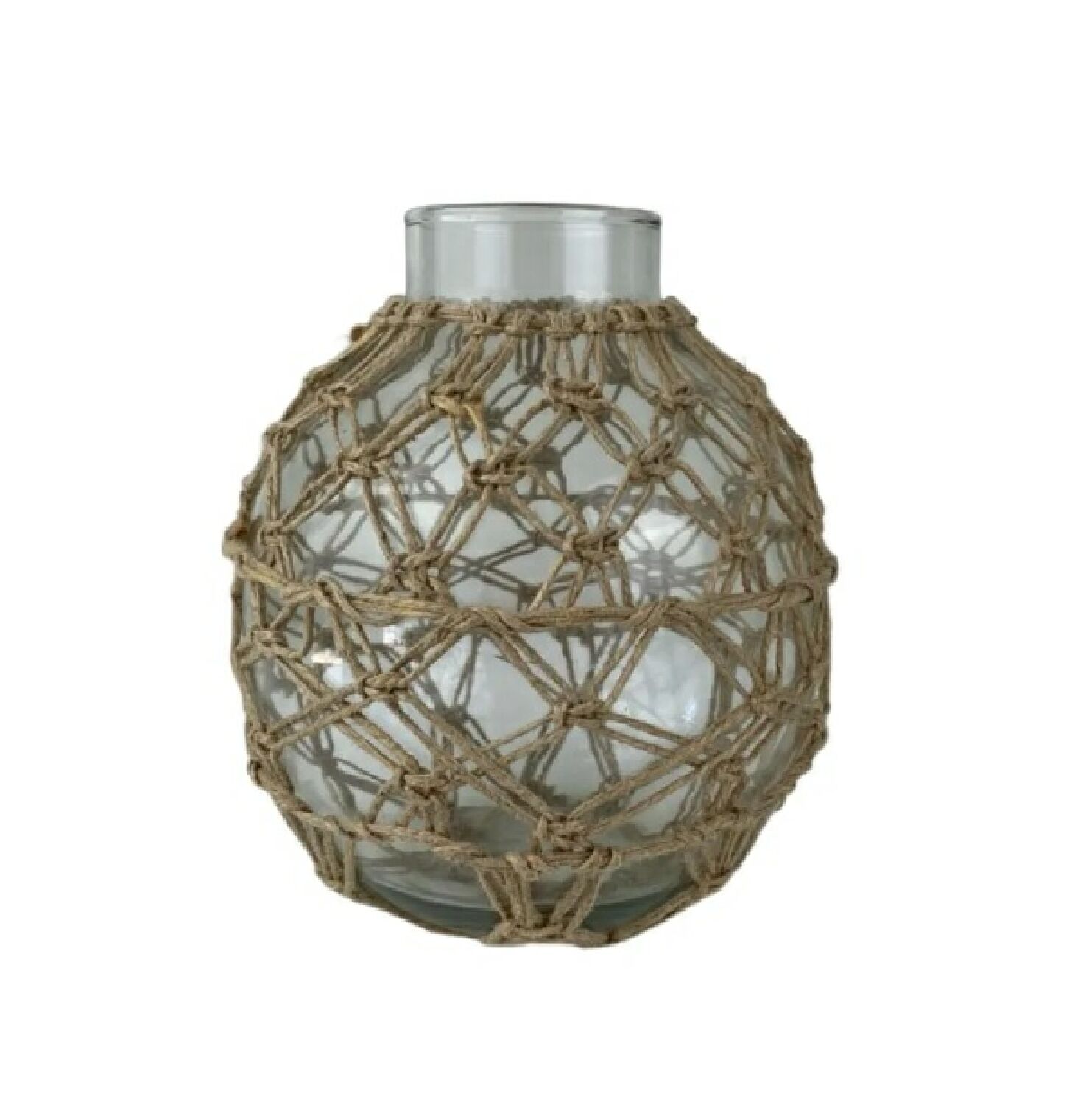 VASO VIDRO REDONDO DETALHE MACRAME 22453 18X18X20C