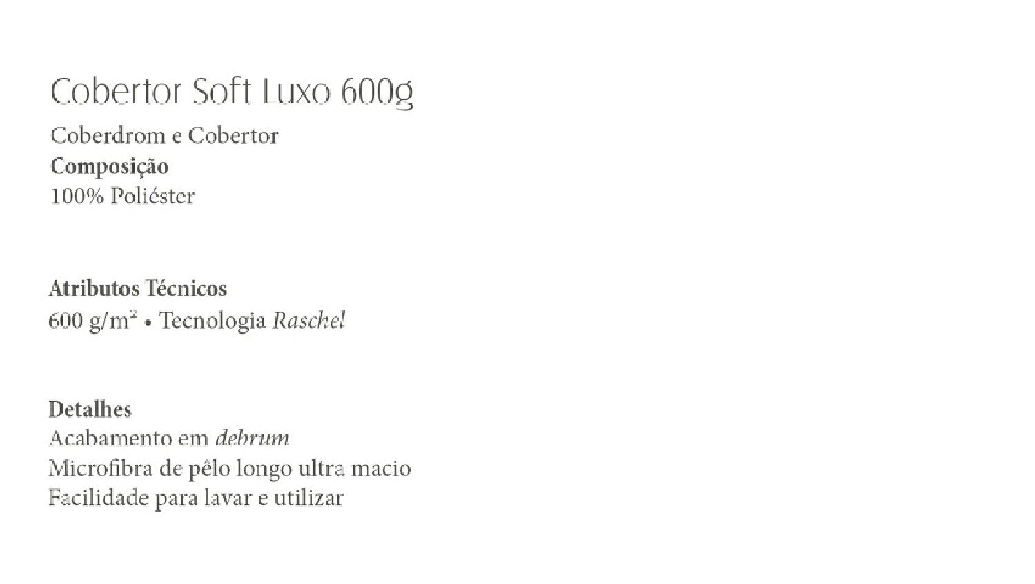 COBERTOR QUEEN 600GR - COR: PEROLA - TAMANHO: 2,20X2,40M - SOFT LUXO.