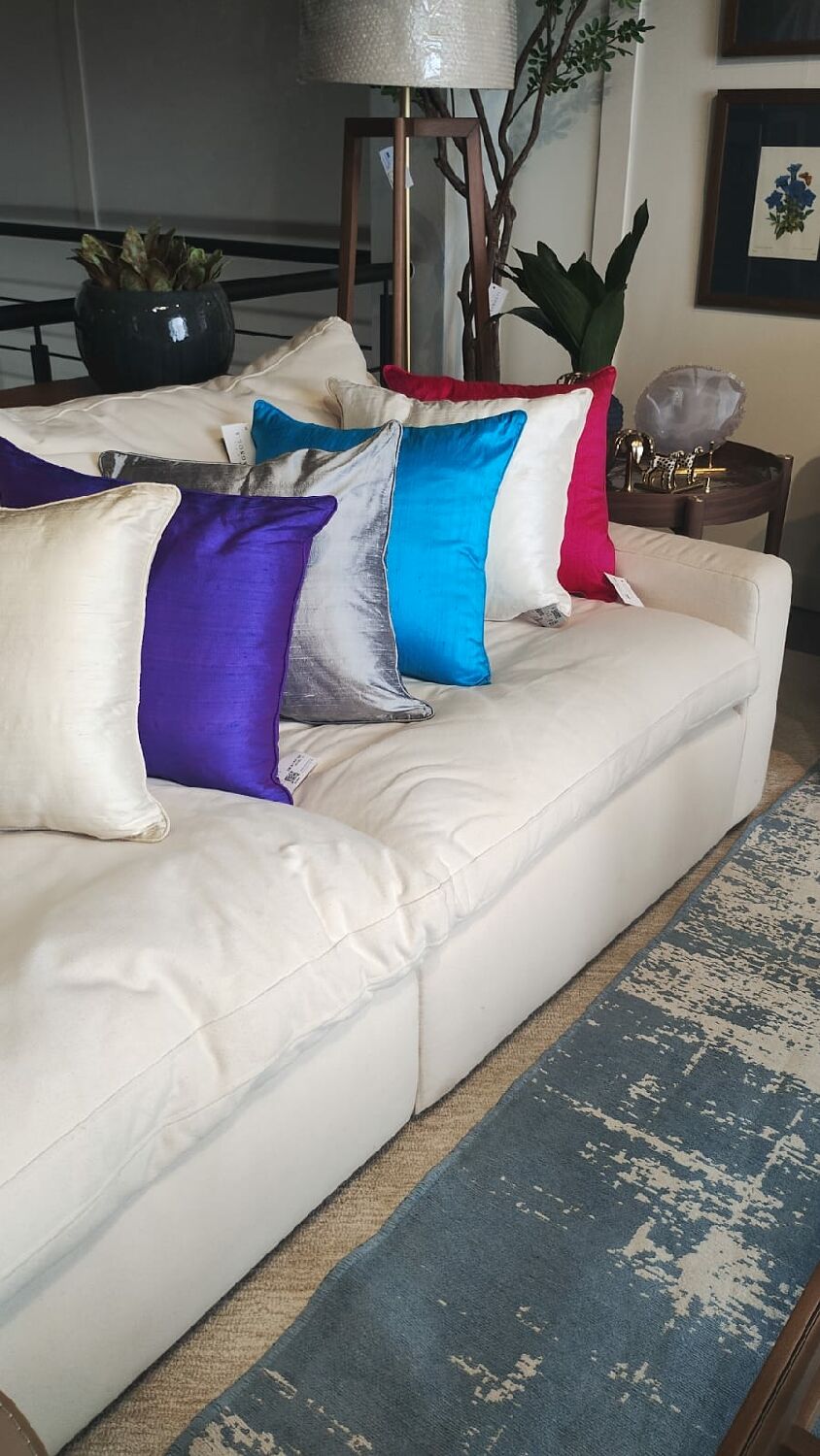 Almofada Shantung de Seda Turquesa com enchimento Quaker Downsense.