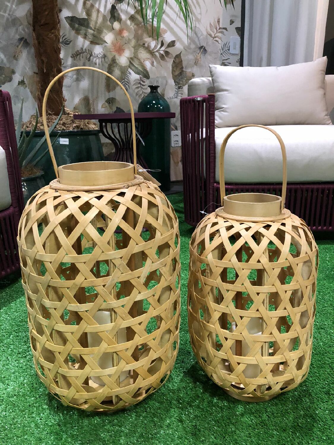 Descubra a serenidade da iluminação artesanal com as Lanternas em Bambu com vela em Led. Cada peça é uma obra-prima, trançada à mão com habilidade e paixão, evocando a exótica beleza do Oriente, podem ser usadas no piso ou suspensas por suas charmosas cordas!