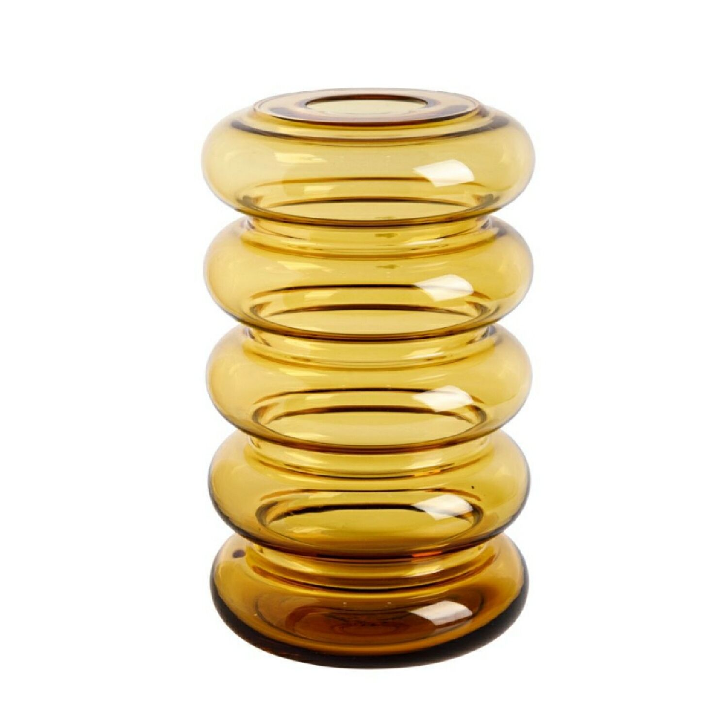 VASO DE VIDRO AMBAR C/ 5 ONDULACOES
