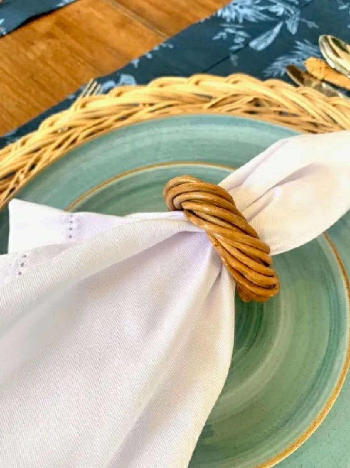 Super charmoso porta guardanapo em junco natural torcido.