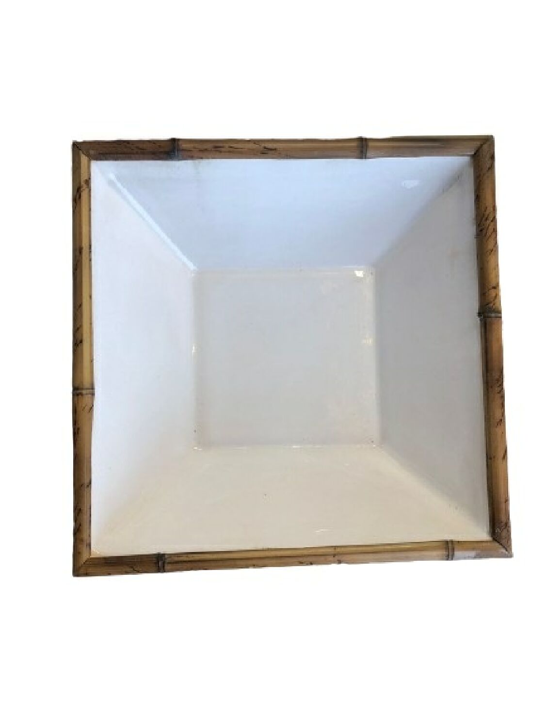 A tigela de cerâmica e bambu é uma peça multiuso. Prática para servir e especial para decorar, pois combina com várias composições e múltiplas formas de usar.