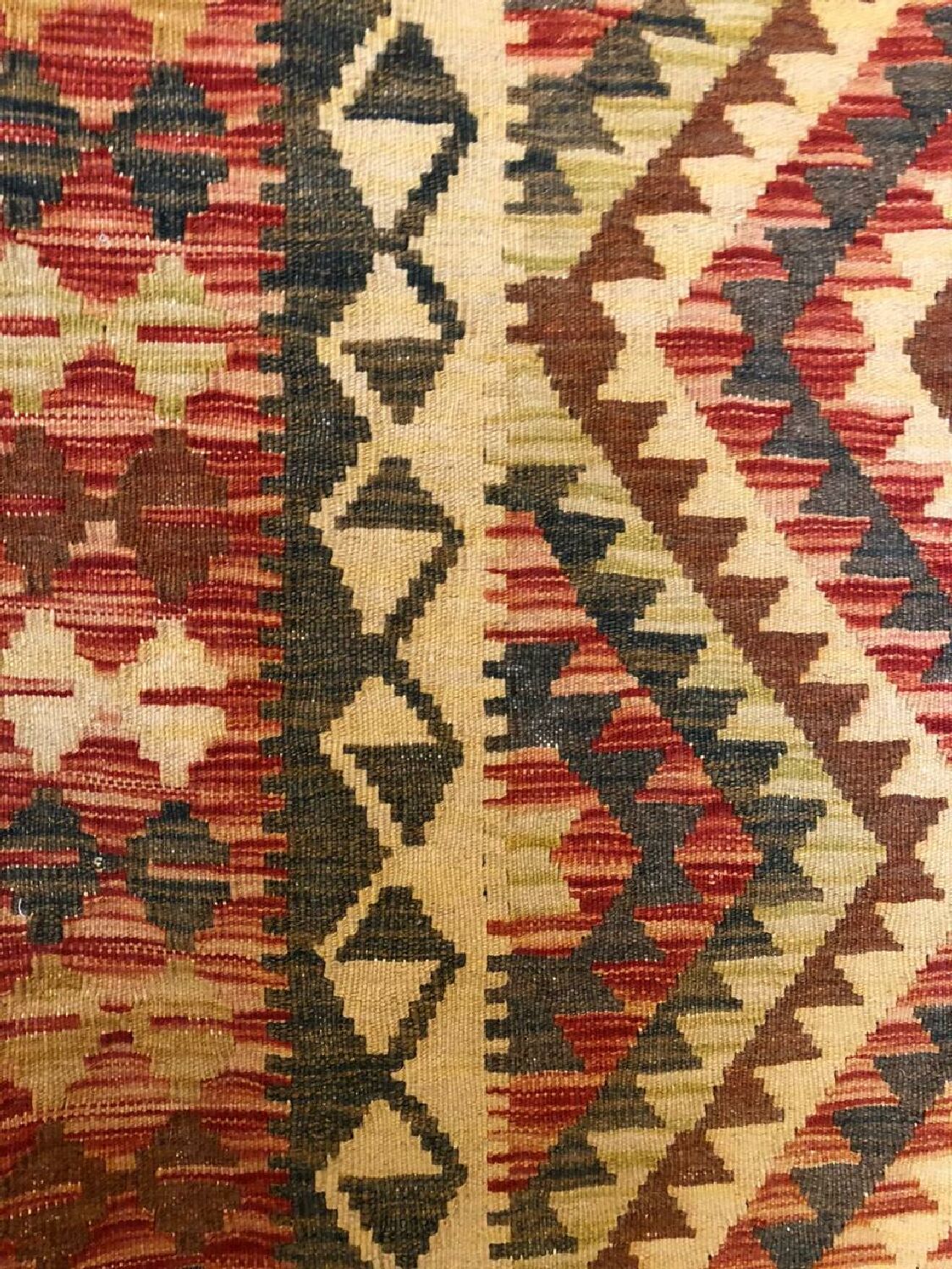 TAPETE KELIM FEITO A MAO 80% LA 20% ALGODAO é comercializado por Fabiana Jardim Saint Pastous Lemos