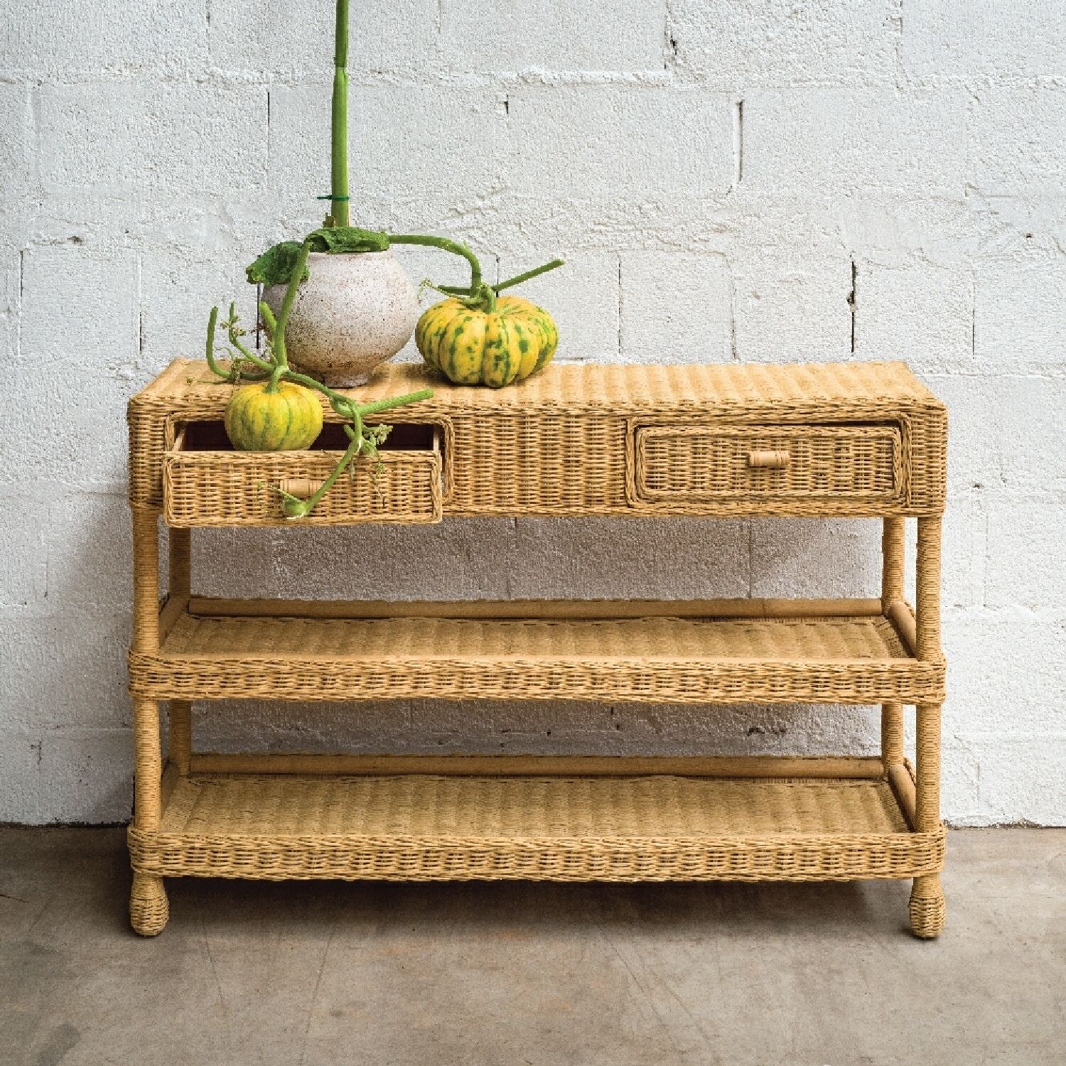 O design versátil do aparador Rattan Luzon permite que ele se adapte a uma variedade de estilos de decoração, desde o rústico e boêmio até o moderno e contemporâneo.