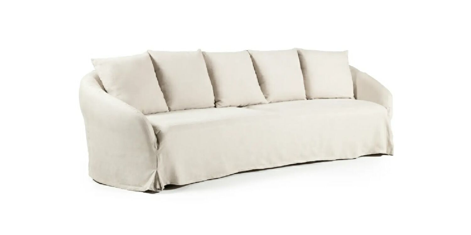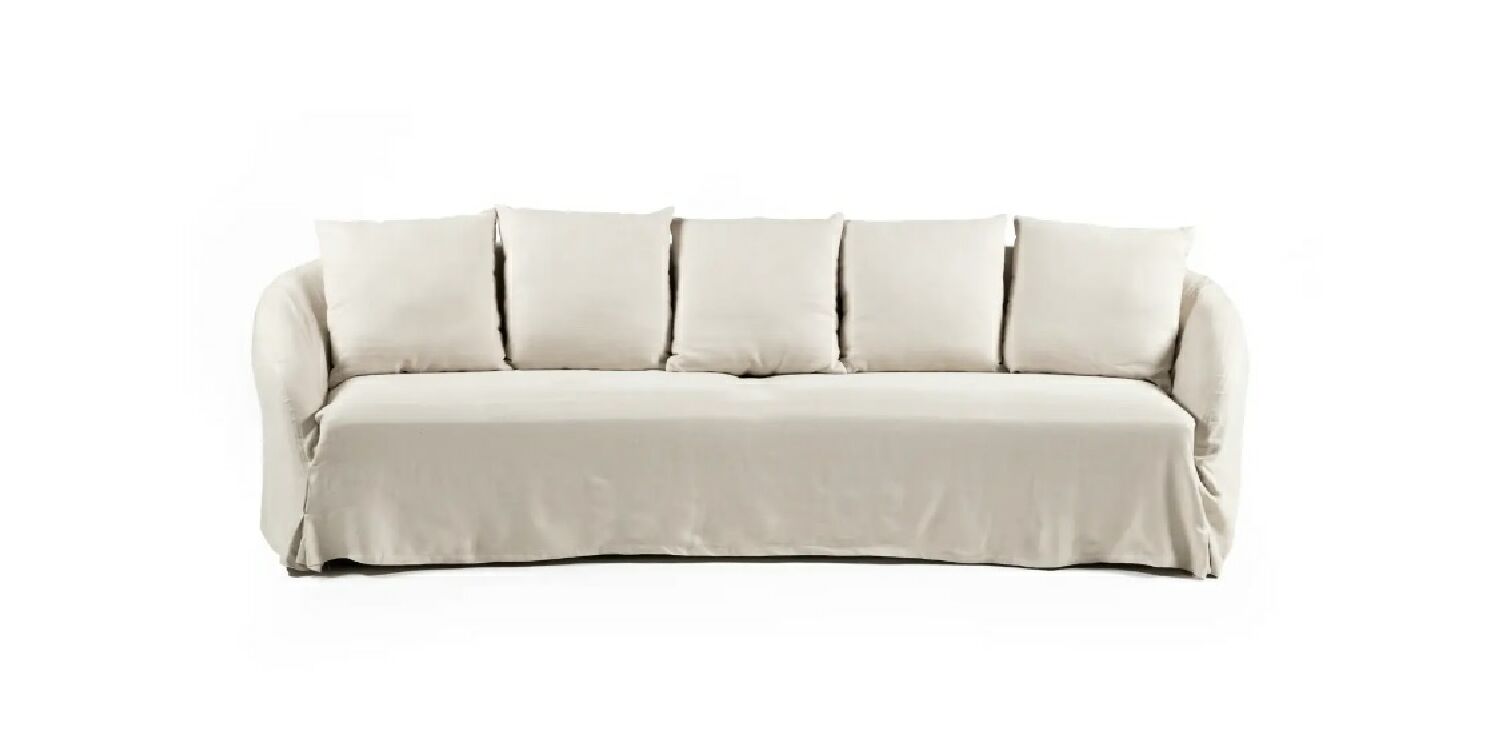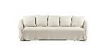 - Sofá com opções tapeçada, tapeçado com capa e apenas capa. Na opção tapeçada, assento fixo sem detalhe de costura, encosto fixo com costura em pesponto duplo e braço fixo com costura em pesponto duplo; almofada de assento fixa com costura em