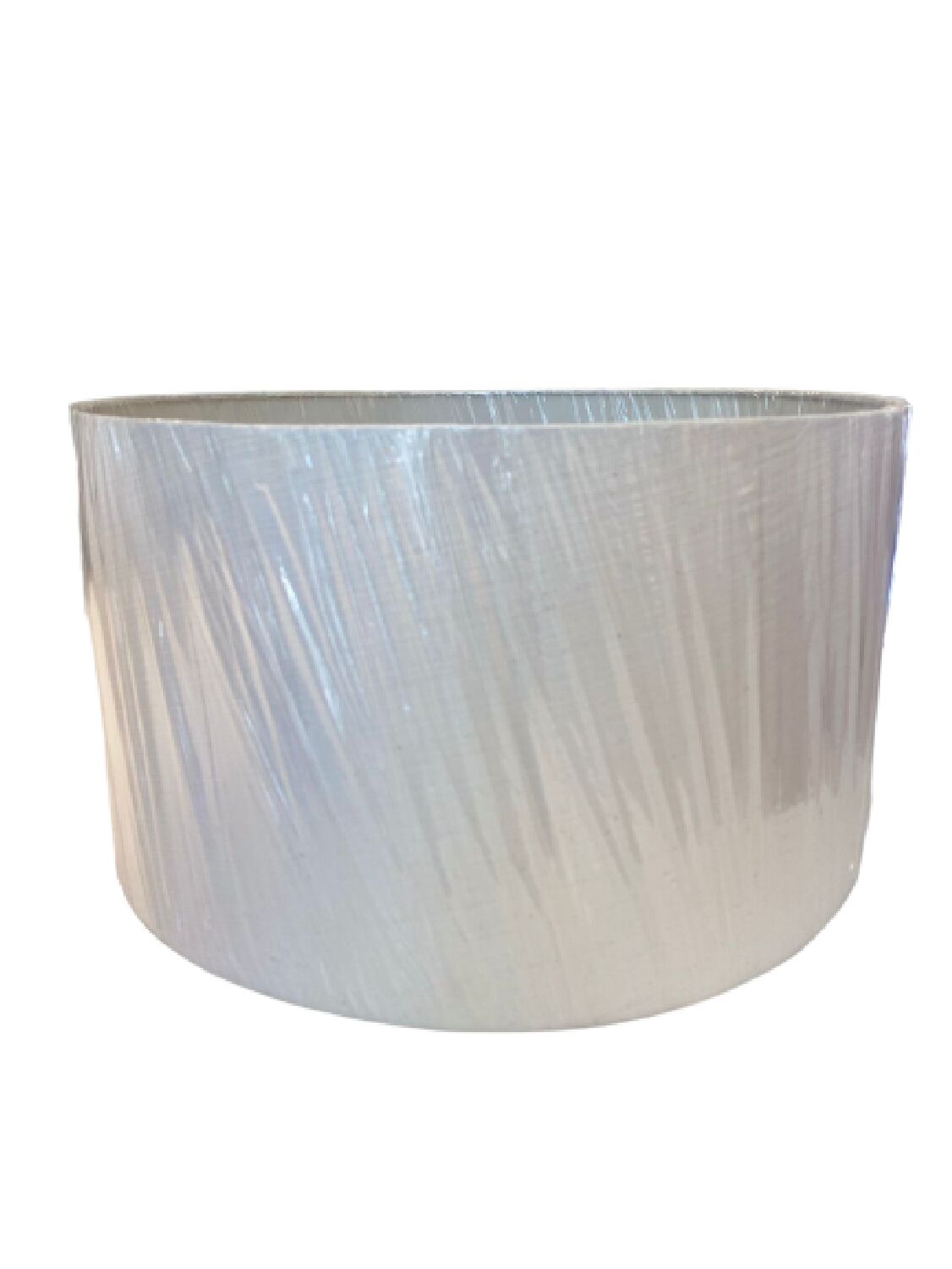 CÚPULA CILÍNDRICA PARA ABAJUR NA COR OFF WHITE, TAMANHO: 25,5CM ALTURA/ 35,5CM LARGURA, EM TECIDO RISCA.