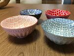 CONJUNTO DE 4 BOWLS EM CERÂMICA - COLORIDOS E ESTAMPADOS.