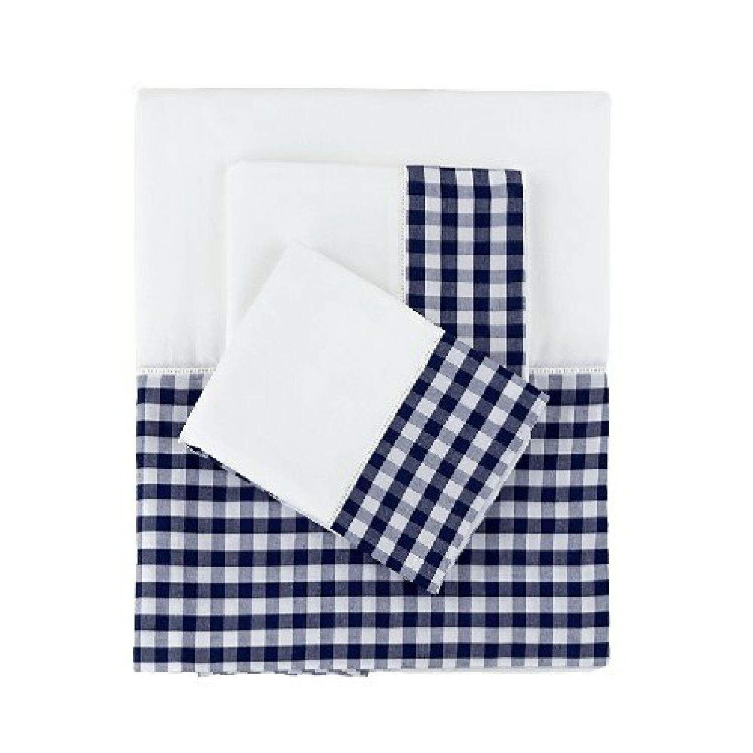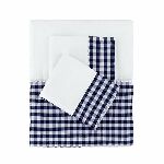 Jogo de Cama Algodão Casal 230 fios Vichy Azul Marinho