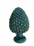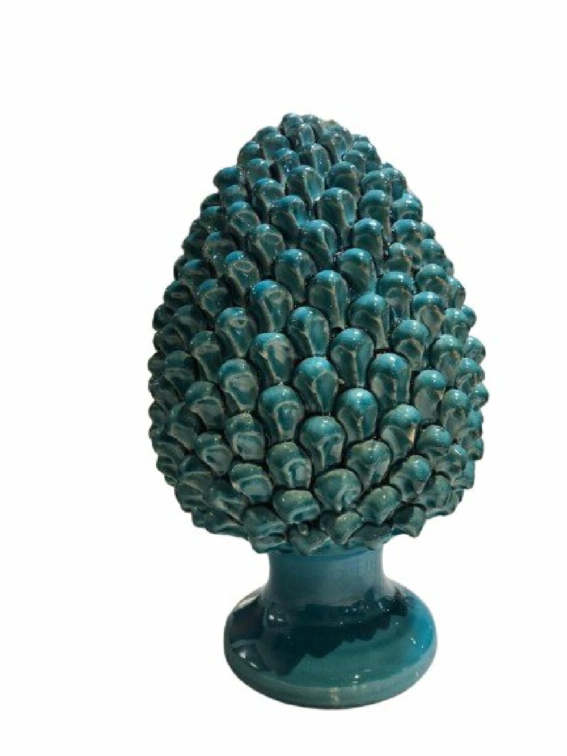 Escultura de ceramica media, remetendo a pinha, em pintura com tom azul turquesa