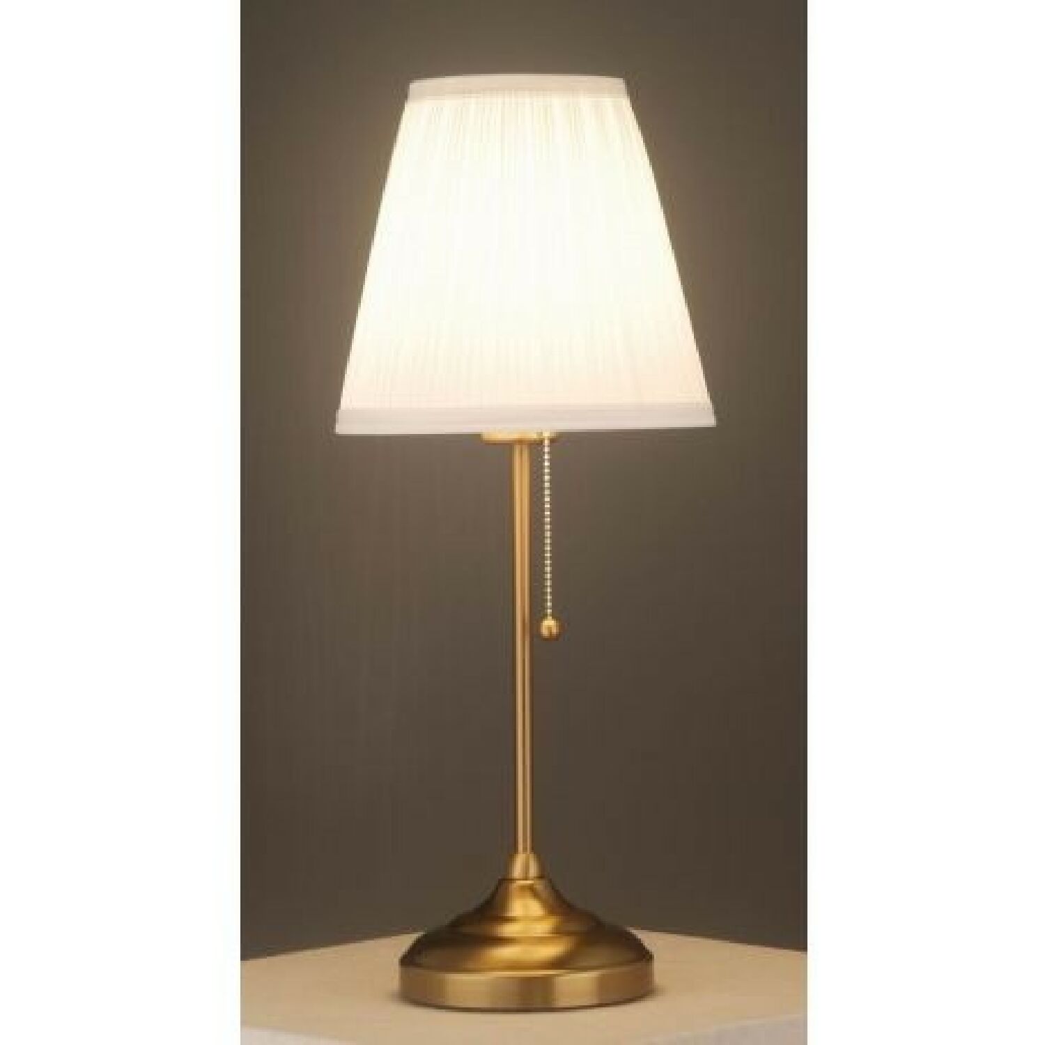 Abajur de mesa em metal com acabamento dourado antigo brilhante. Possui uma cúpula redonda tipo Empire com estrutura rígida, forrada em tecido de seda fosco branco, com dimensões de 5cm X 9cm X 8cm de altura. A abajur conta com um interruptor de cordão, cabo preto e suporta uma lâmpada de até 40W de potência máxima.