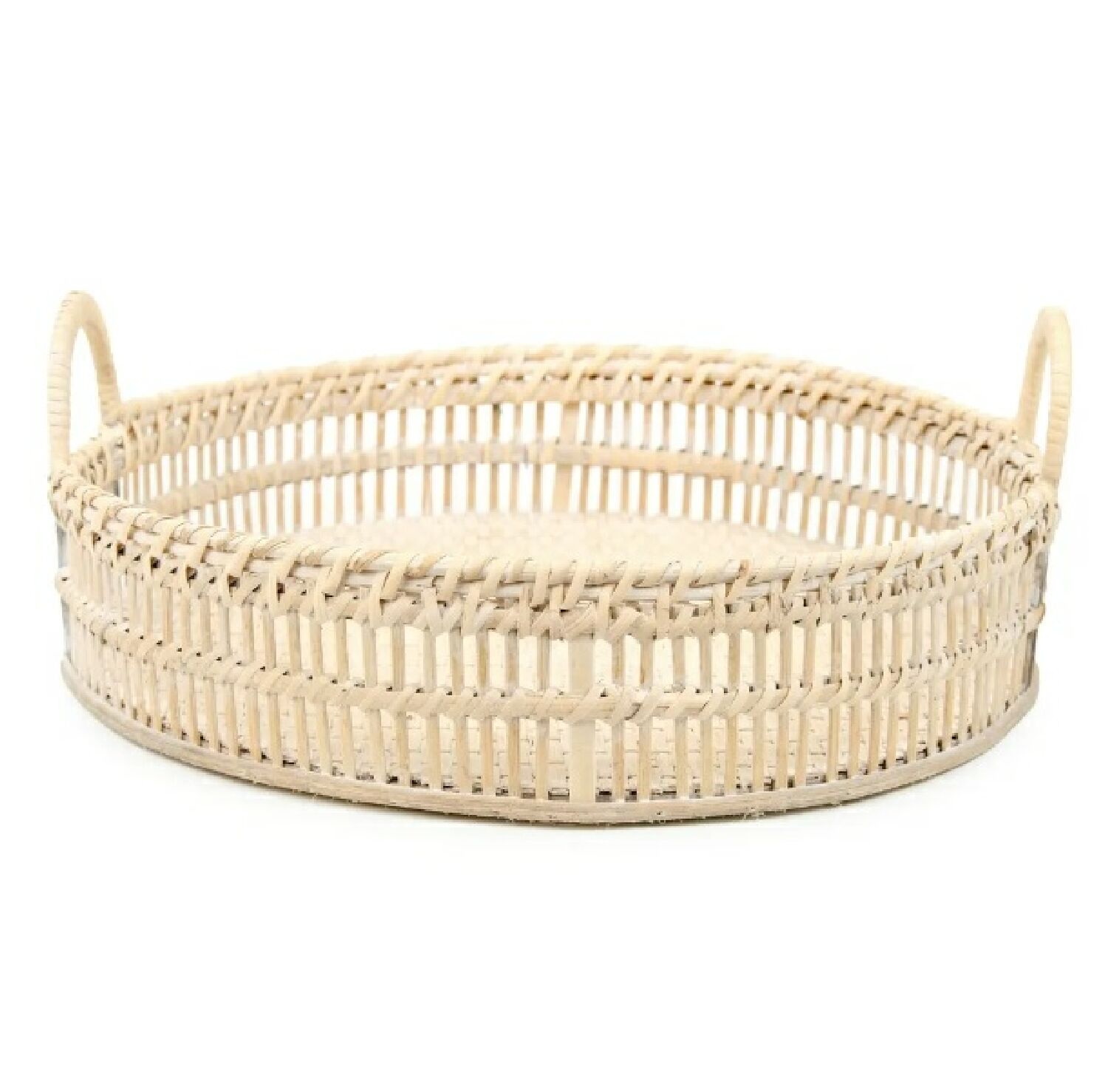 BANDEJA REDONDA COM ALÇA BAMBU E RATTAN NATURAL 15X42X41CM C/ 1 UN