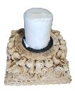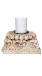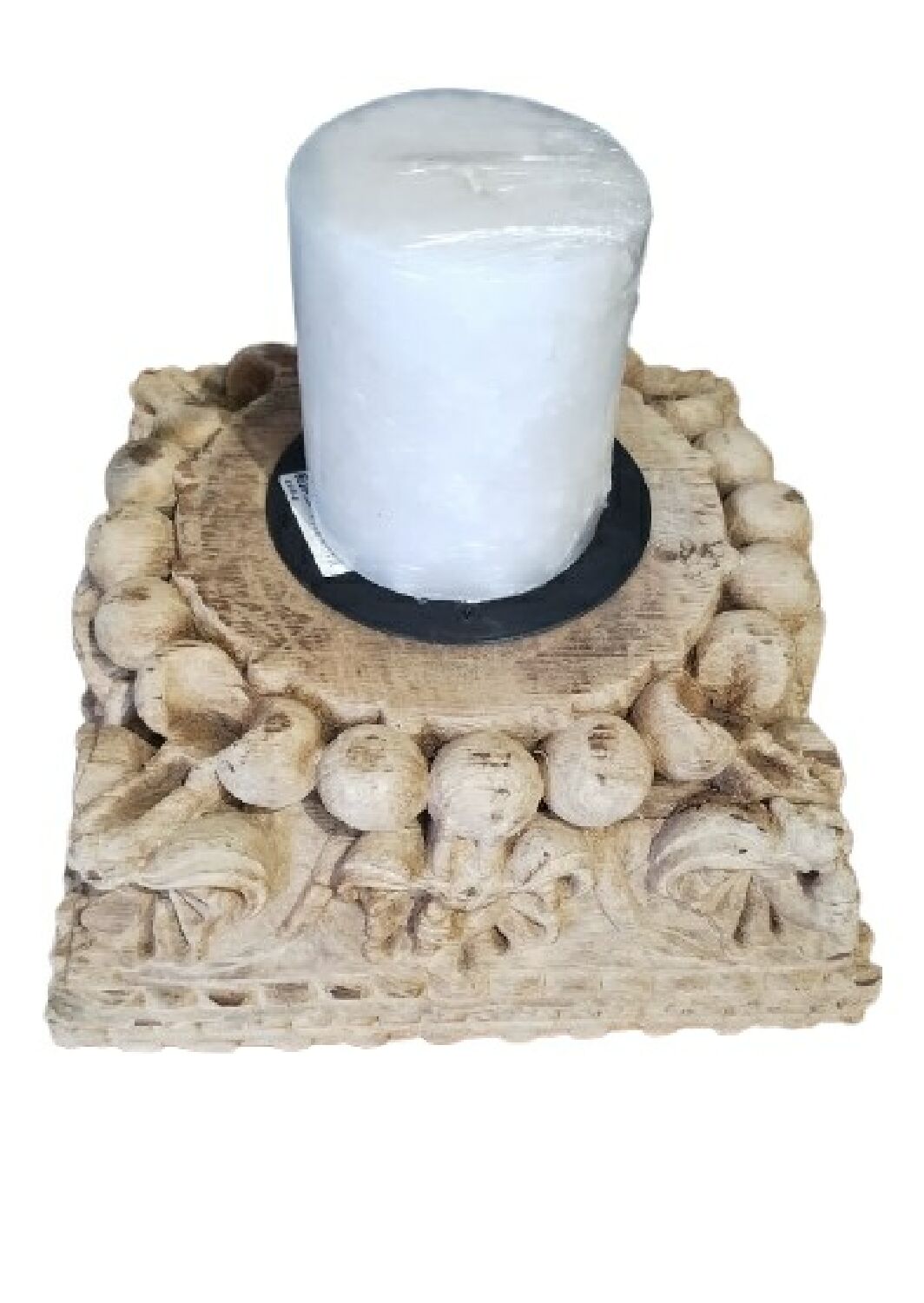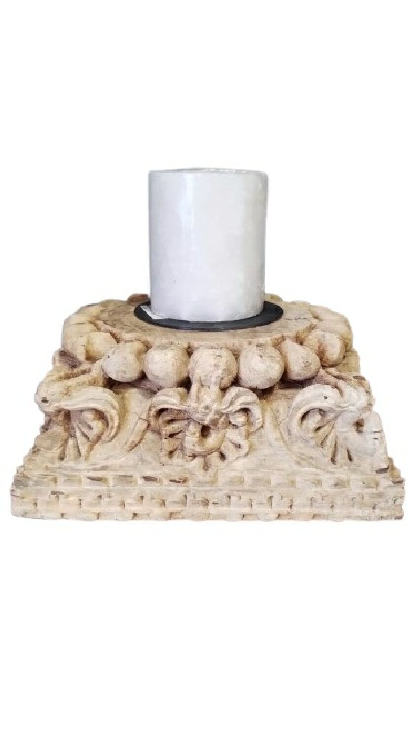Suporte de vela antigo de madeira coluna base original, esculpido à mão.